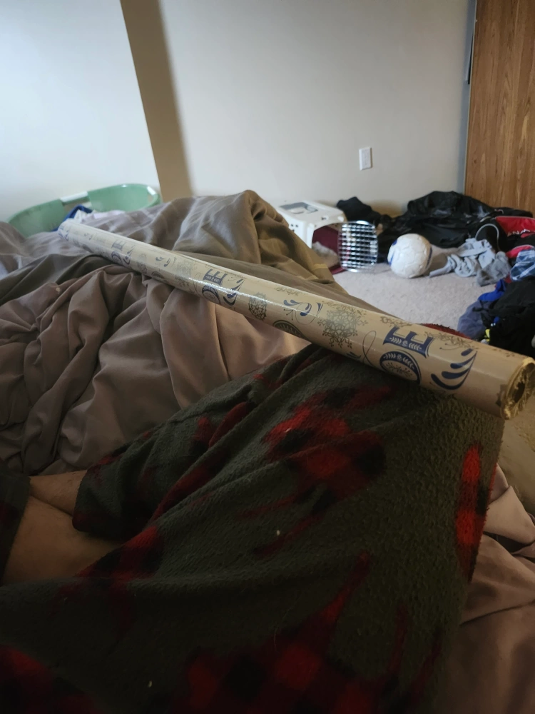 Selling a roll of gift wrapping paper with a blue and white design. Perfect for wrapping presents for any occasion! It's in great condition and ready to make your gifts look extra special