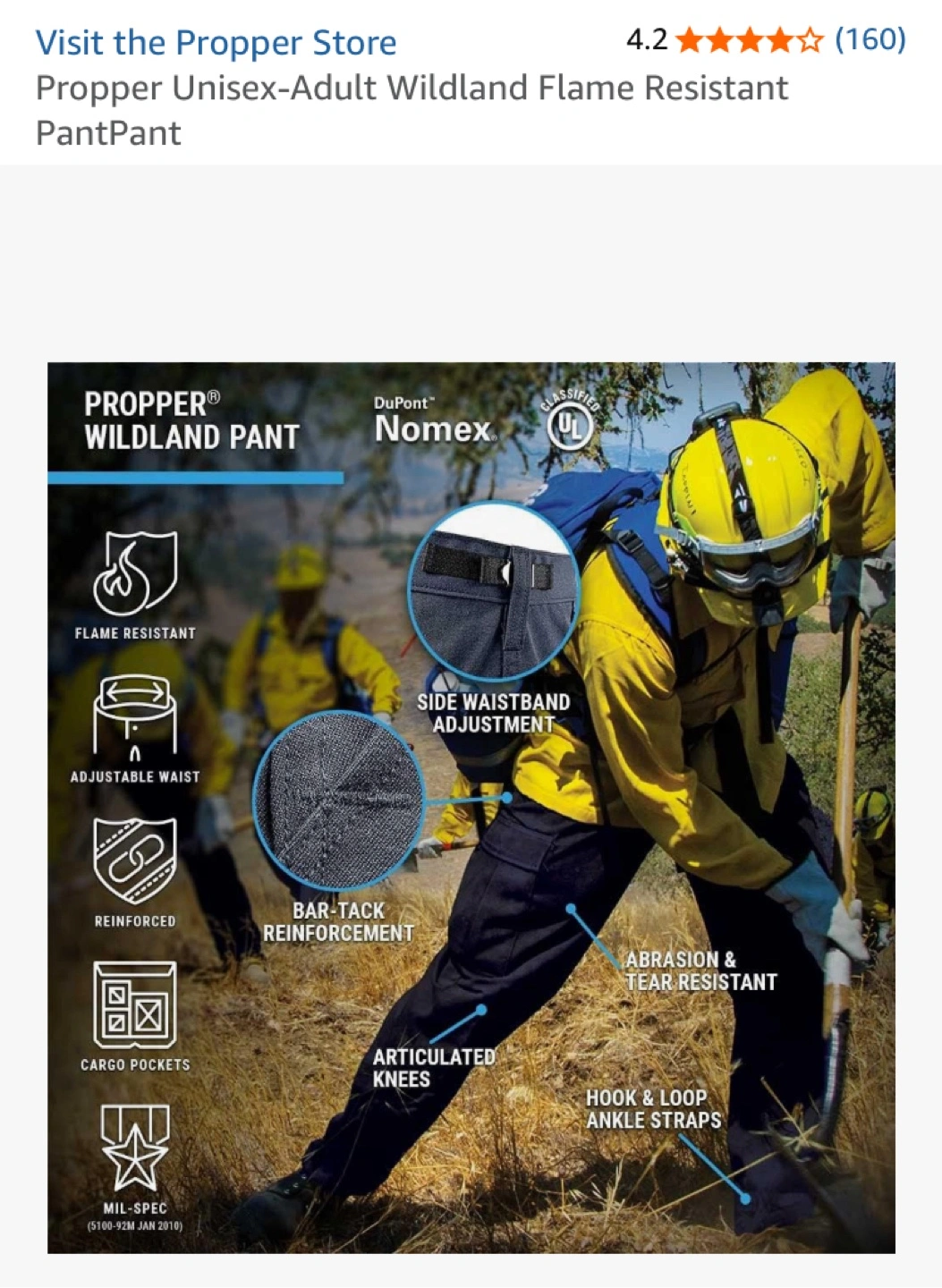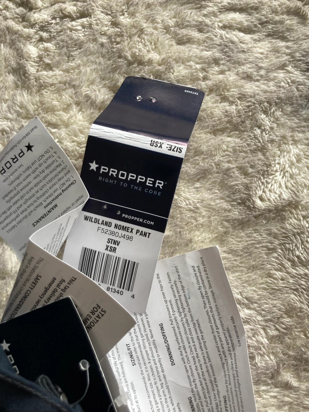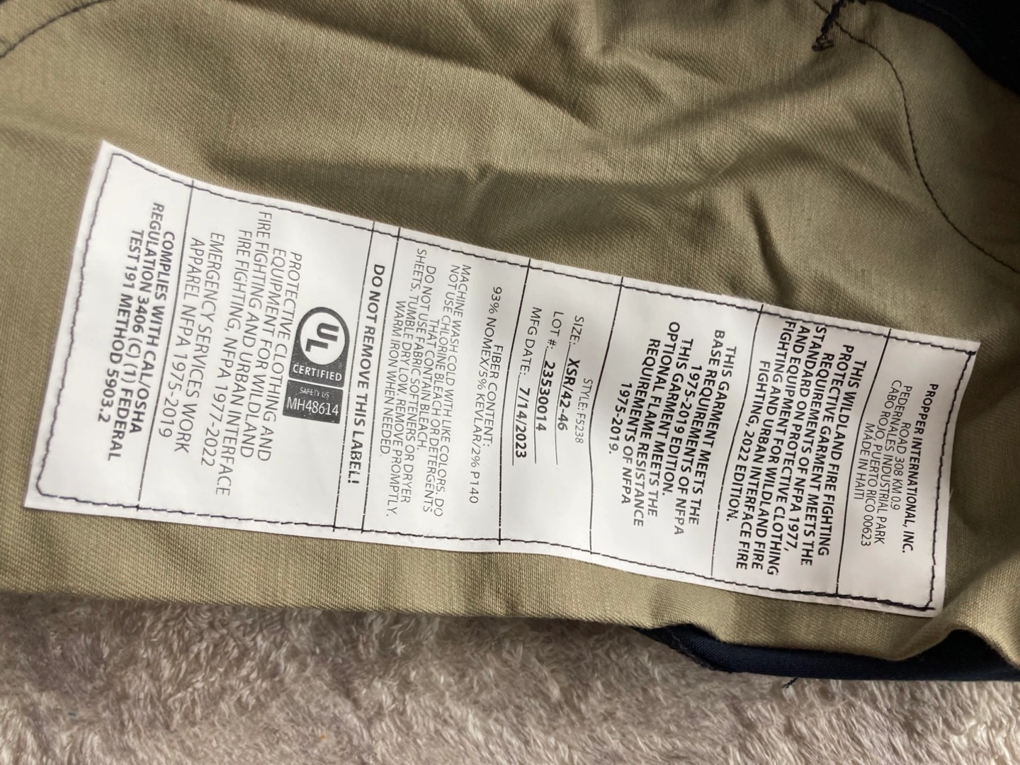 Selling a pair of Propper Wildland Nomex Pants in size XS. The colour is Station Navy and they are made of 93% Nomex/5% Kevlar/2% P140. These pants are designed for wildland fire fighting and urban interface emergency services. The manufacturing date is 2023 July 14.
