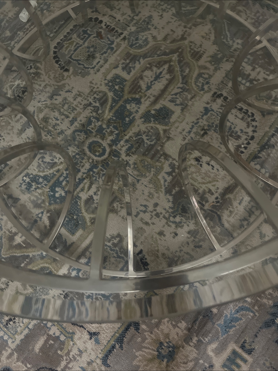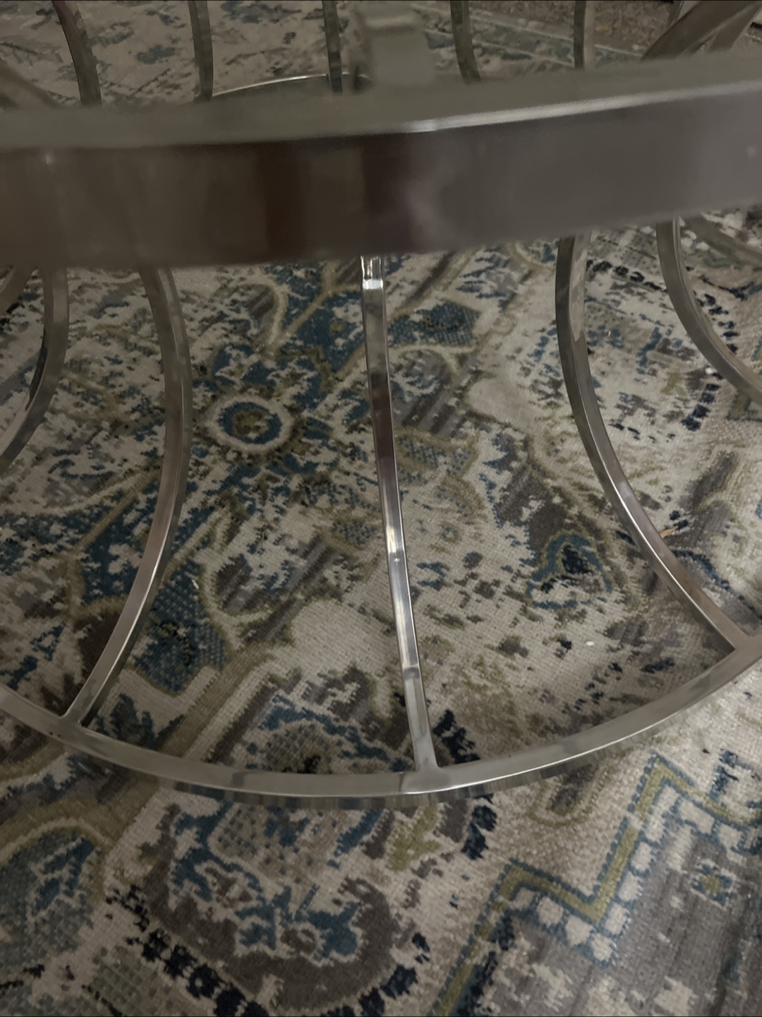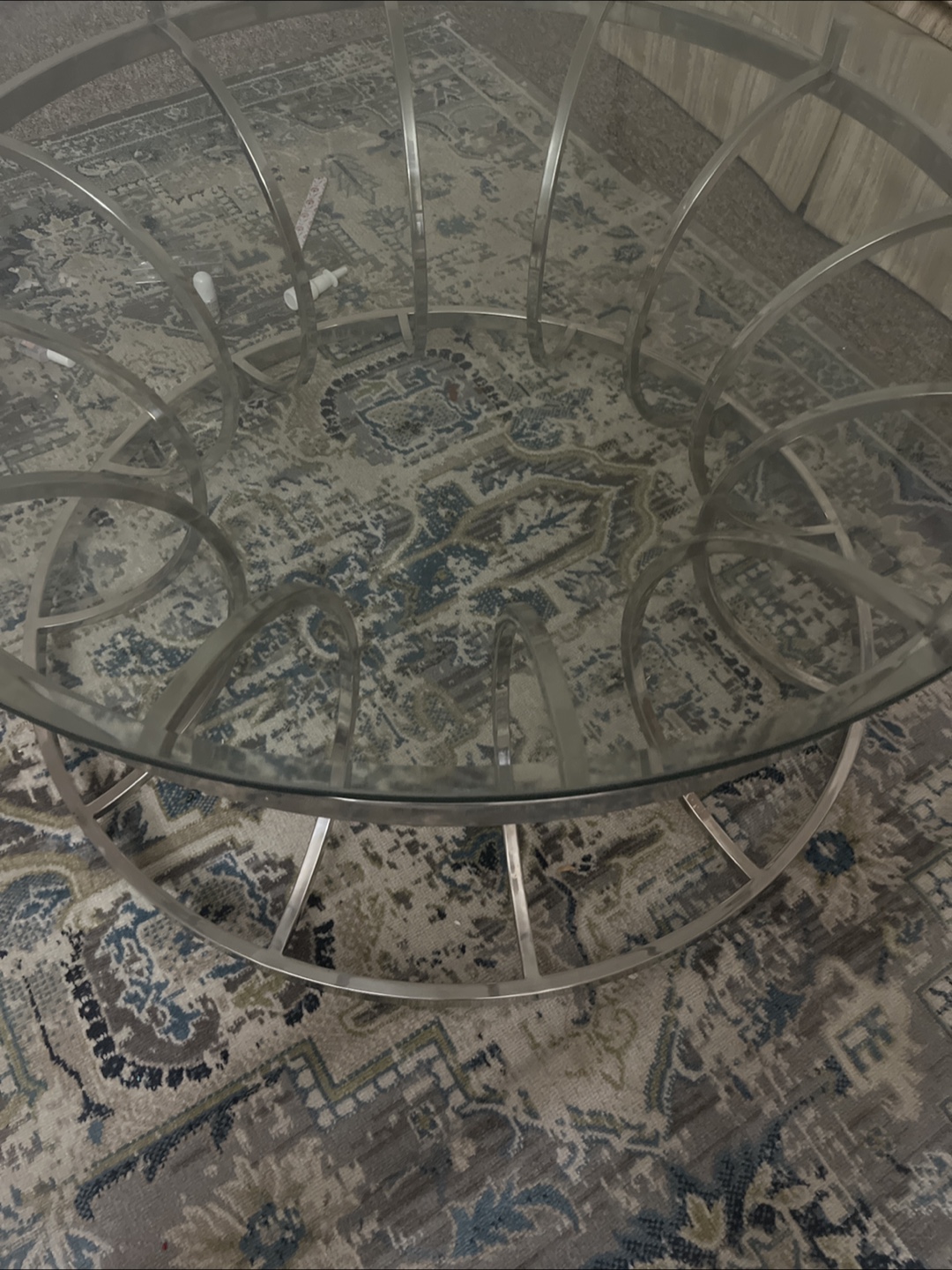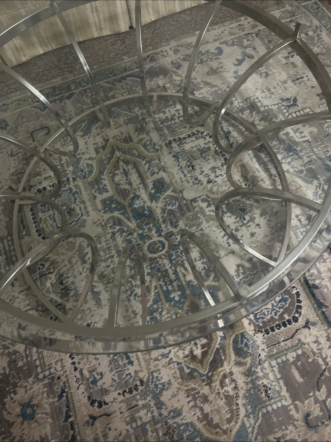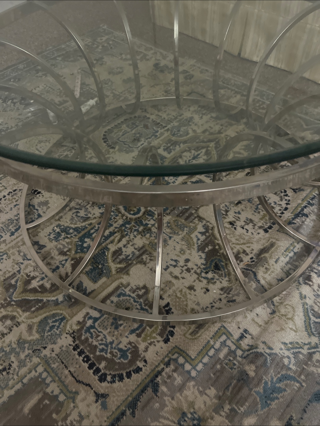 Selling a glass top coffee table with a silver frame. It's in great shape and would look lovely in any living room! The design is modern and elegant, perfect for adding a touch of sophistication to your space