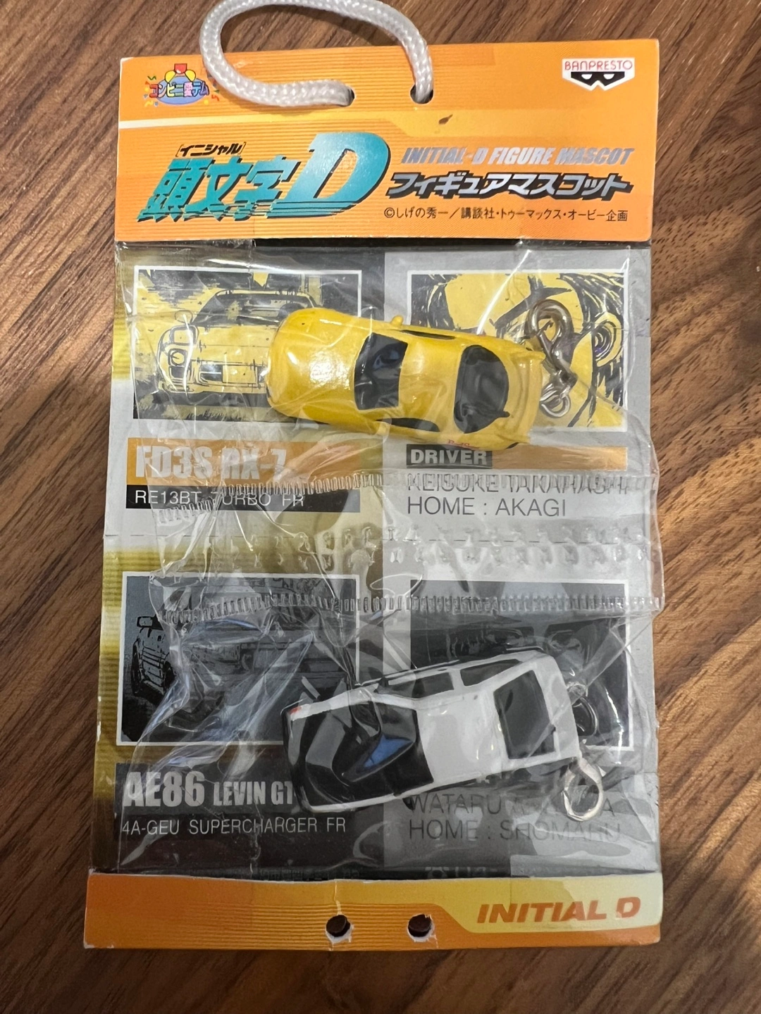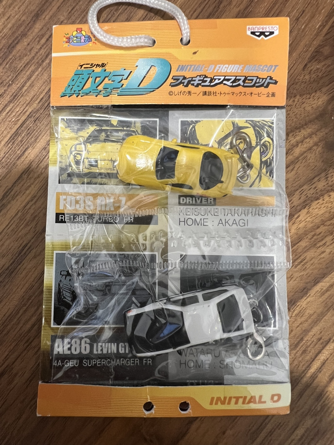 Selling a collectible Initial D figure mascot keychain set. The set includes miniature cars from the series, still in their original packaging. Great for fans of Initial D or collectors of anime merchandise! Bought in Japan over 20 yrs ago