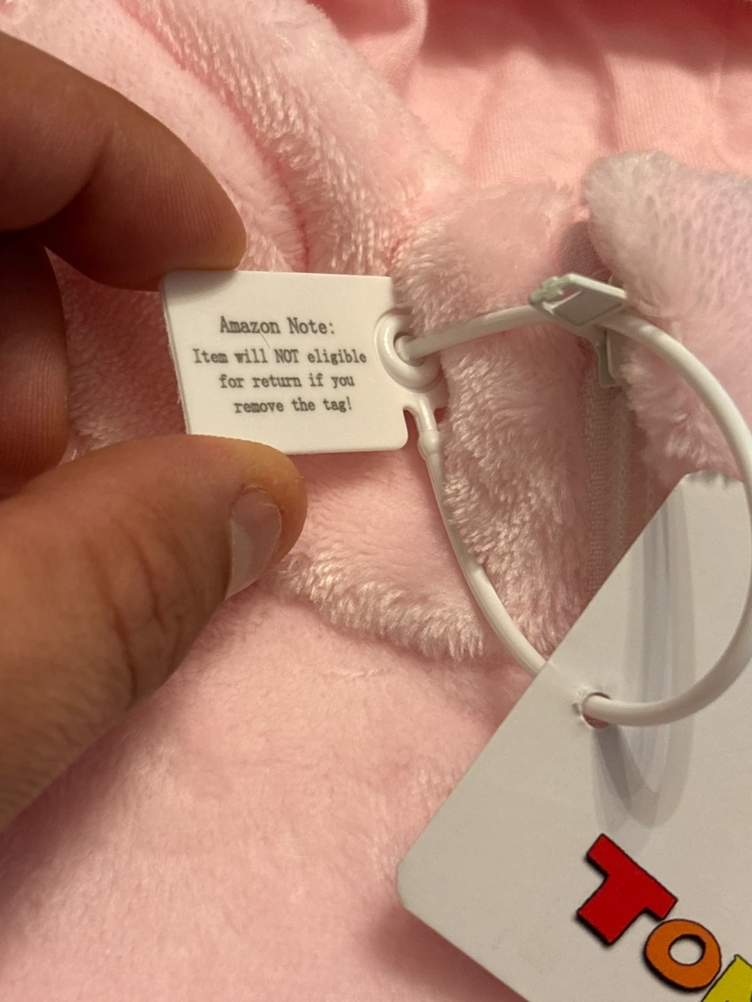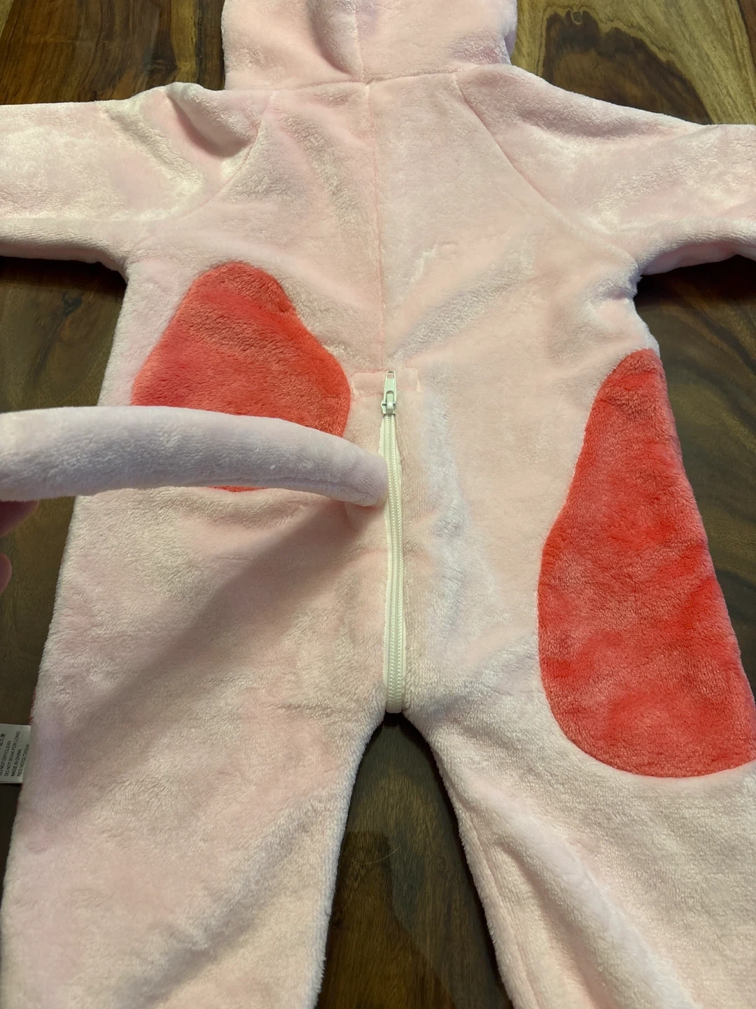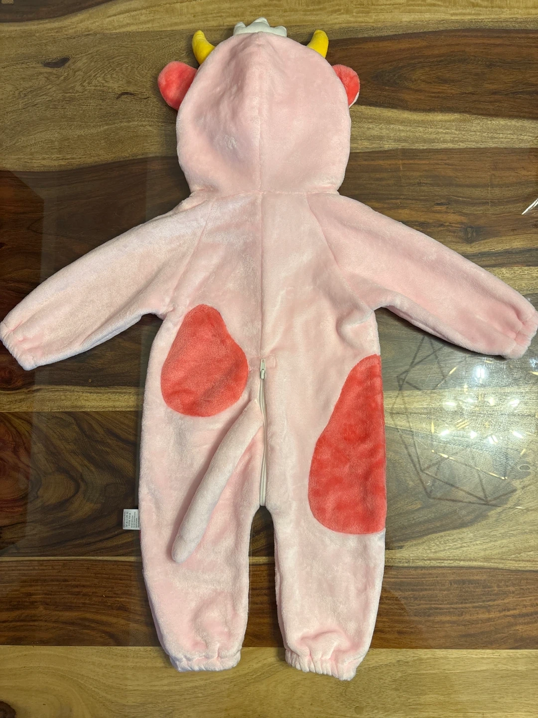 Super cute baby cow costume from TONWHAR! It's pink with red spots and has a little tail. The size is 73/48.