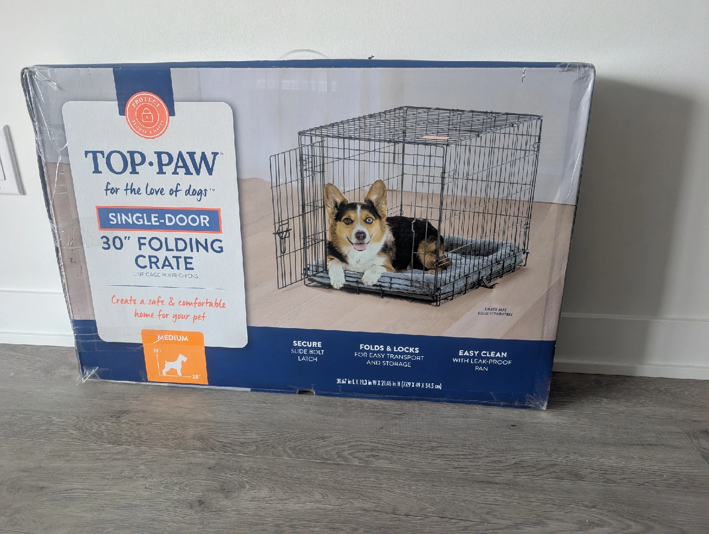 Top Paw Single Door Folding Wire Dog Crate (BLACK, 30\"L x 19\"W x 21\"H)