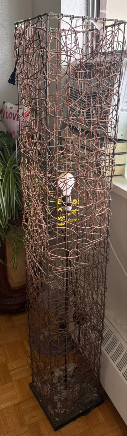 Selling a unique wicker floor lamp! It adds a touch of rustic charm to any room. The lamp features a woven design and a convenient foot switch for easy on/off operation. Perfect for creating a cozy atmosphere in your living space. Needs handy crafting thus the price.