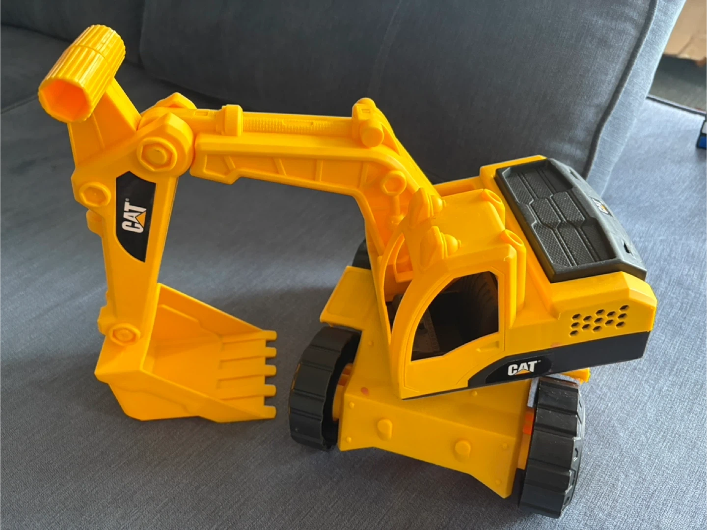 I'm selling a CAT excavator toy in yellow. It's a fun and durable toy for kids who love construction vehicles. The toy is in great condition and ready for a new home!