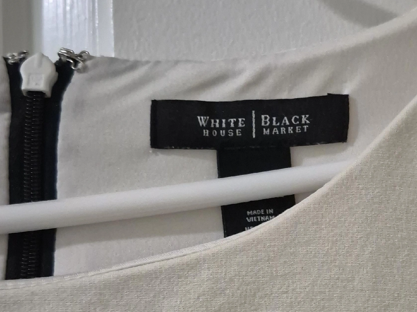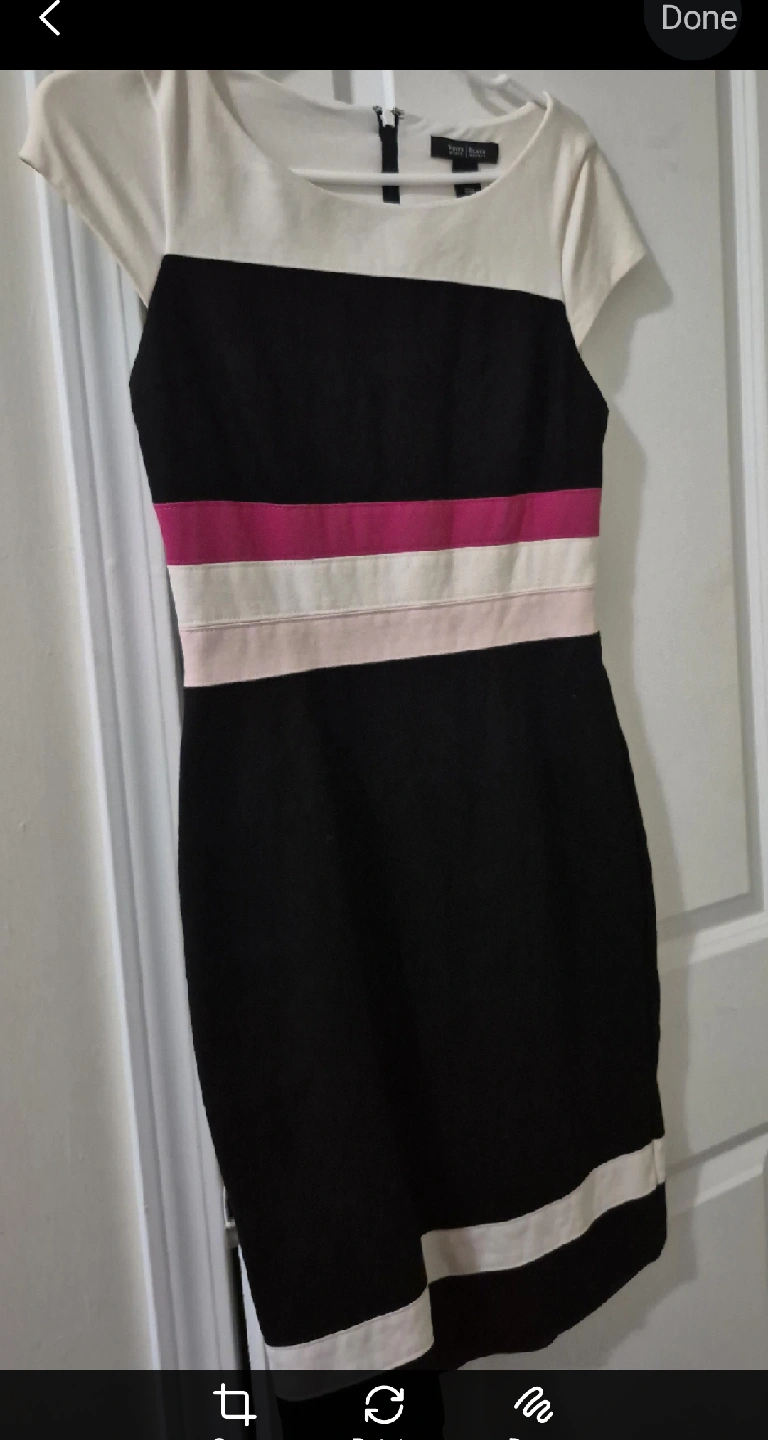 🥕A lovely White House Black Market dress! It features a unique colour block design with black, white, and pink accents. Perfect for any occasion