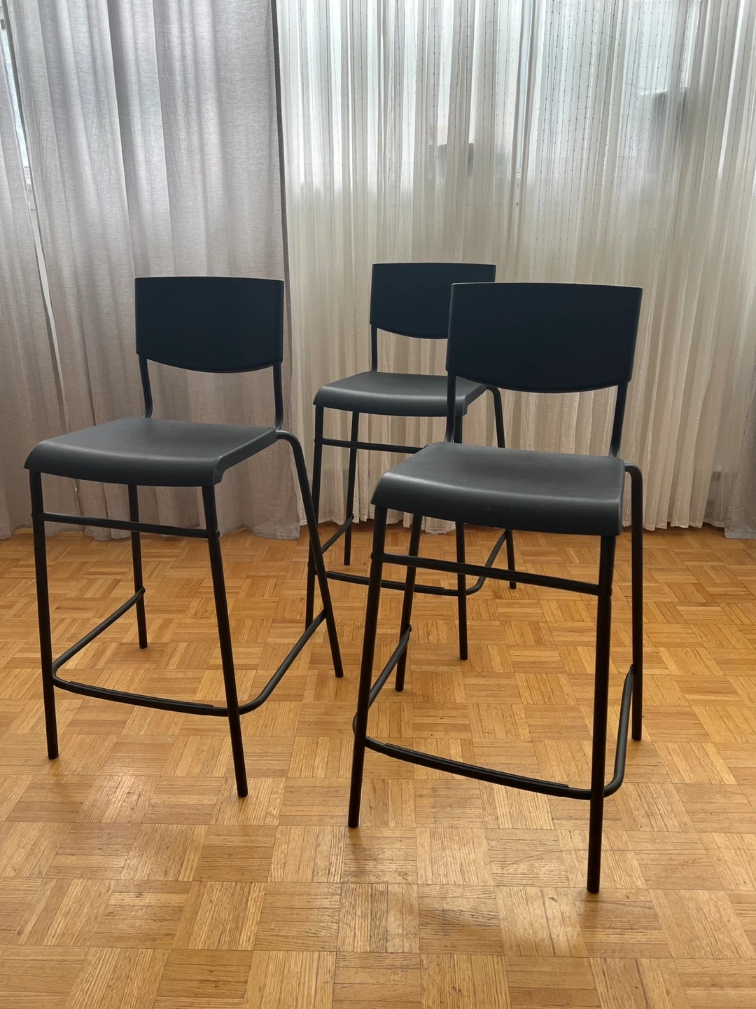 121Selling a set of three IKEA bar stools (could be sold individually, price is for each). They're in great shape and would look fantastic in any kitchen or bar area. The sleek black design is modern and versatile, fitting in with a variety of decor styles
