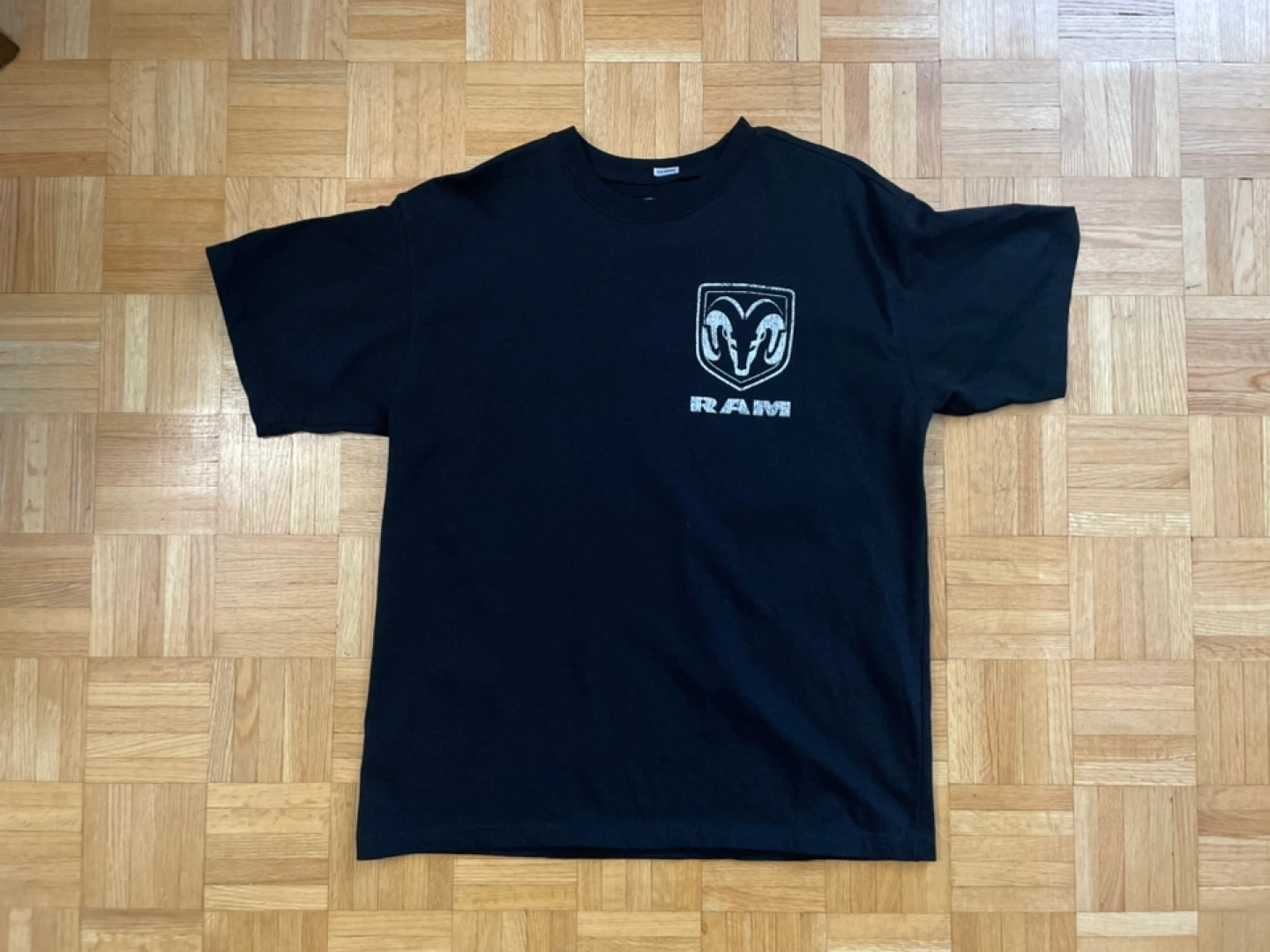 Selling a black RAM graphic t-shirt. The shirt features the RAM logo on the front and a design with "STRENGTH & DEPENDABILITY" and a truck on the back. It's in good condition and ready for a new home