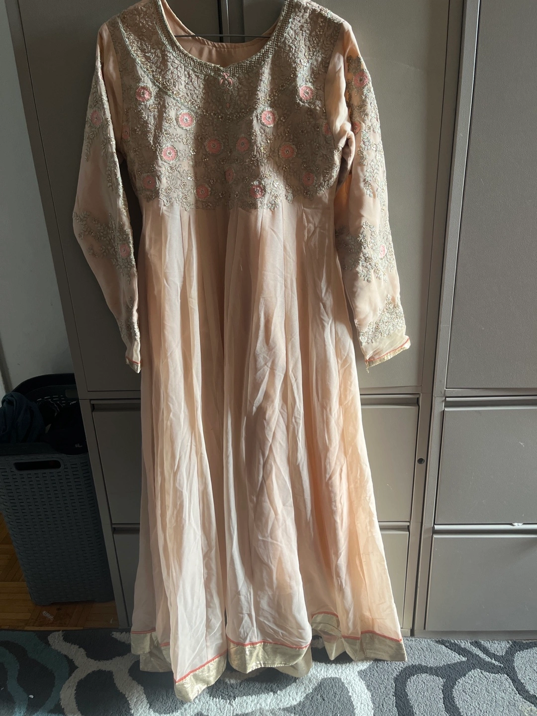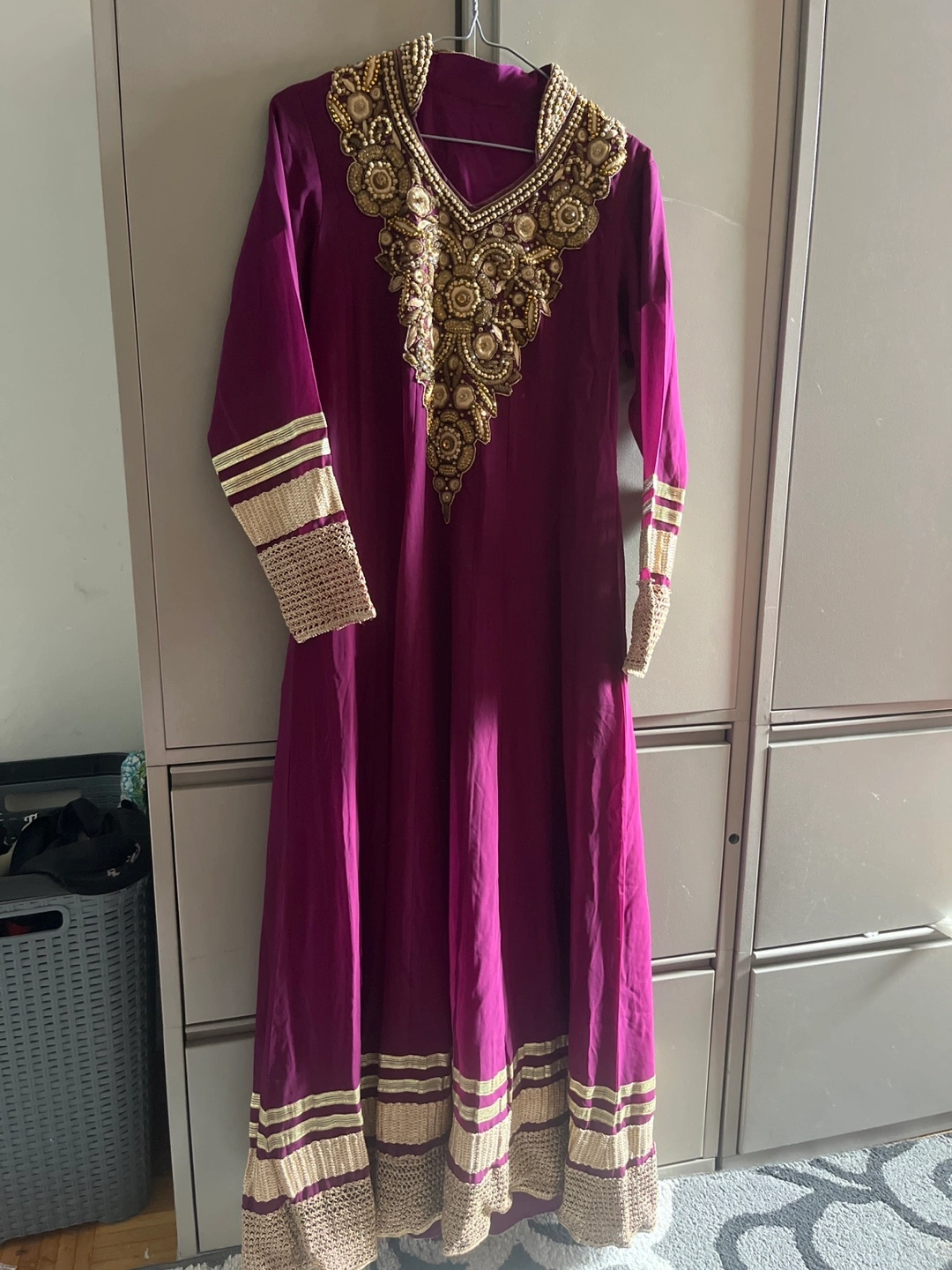 Selling a set of four Anarkali dresses. They are in excellent condition and feature beautiful embroidery and detailing. Perfect for special occasions!