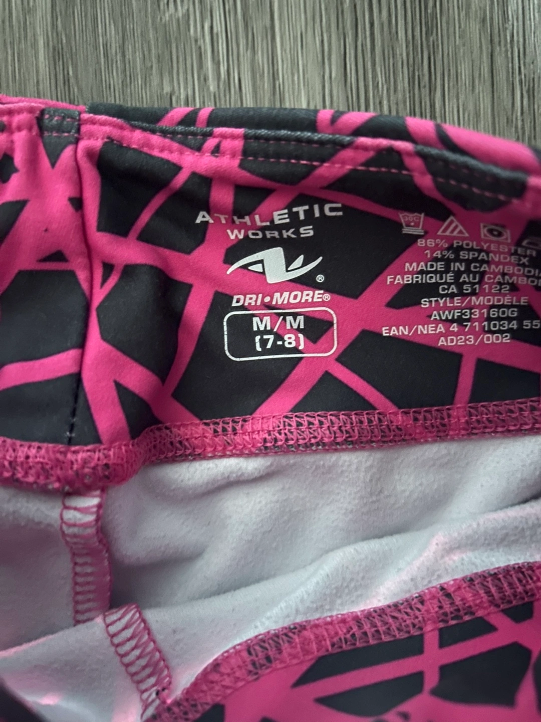 45Selling a pair of girls' leggings from Athletic Works. They're a size M (7-8) and feature a fun pink and black geometric pattern. Made with Dri-More fabric, so they're comfy for active kids! Great for sports or everyday wear No porch pick up Pick up only Beatrice and Wilson Oshawa