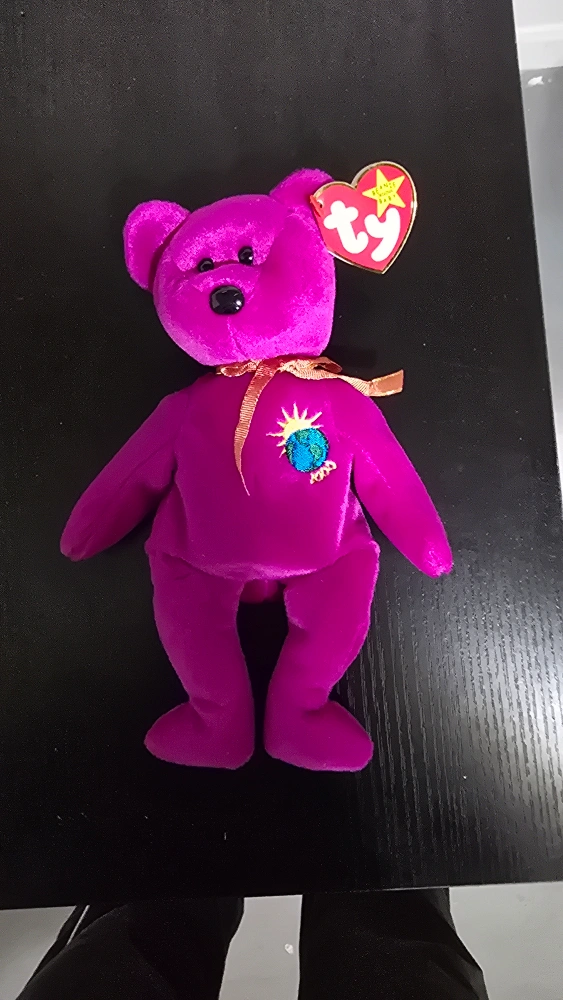 60Selling a cute purple Ty Beanie Baby bear! It's from the year 1999 and has a little Earth and sun design on its chest. A sweet addition to any collection!