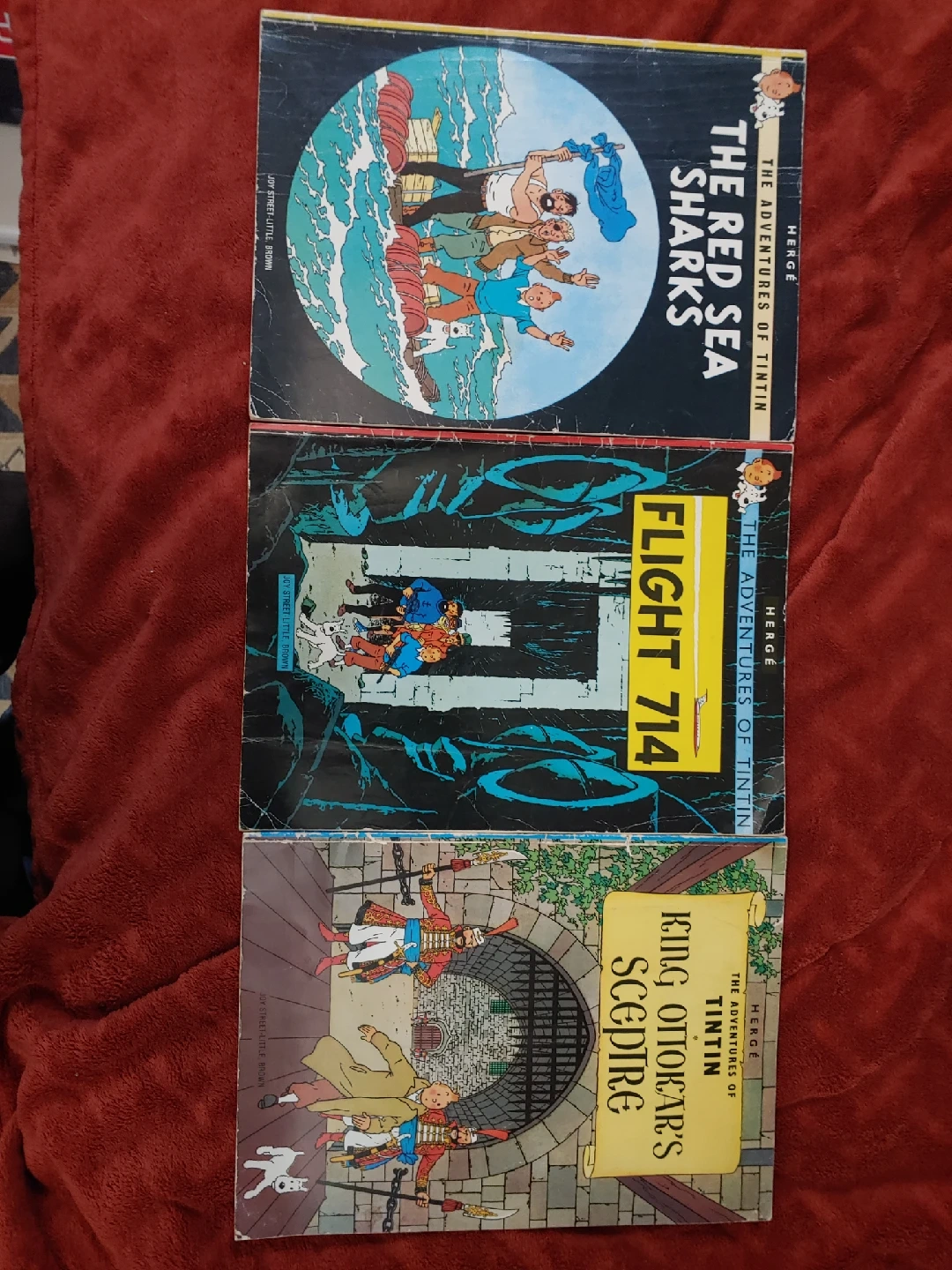 3 Herge The Adventures of TinTin Comic Books by Joy Street-Little, Brow. Covers are worn but inside is immaculate The Red Sea Sharks $10 Flight 714 $10 King Ottokar's Sceptre $10