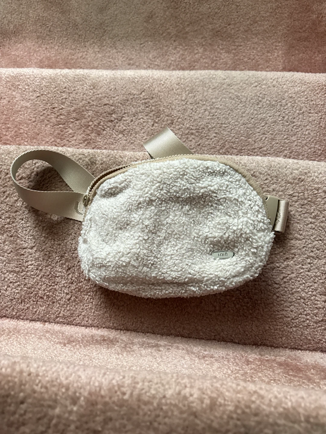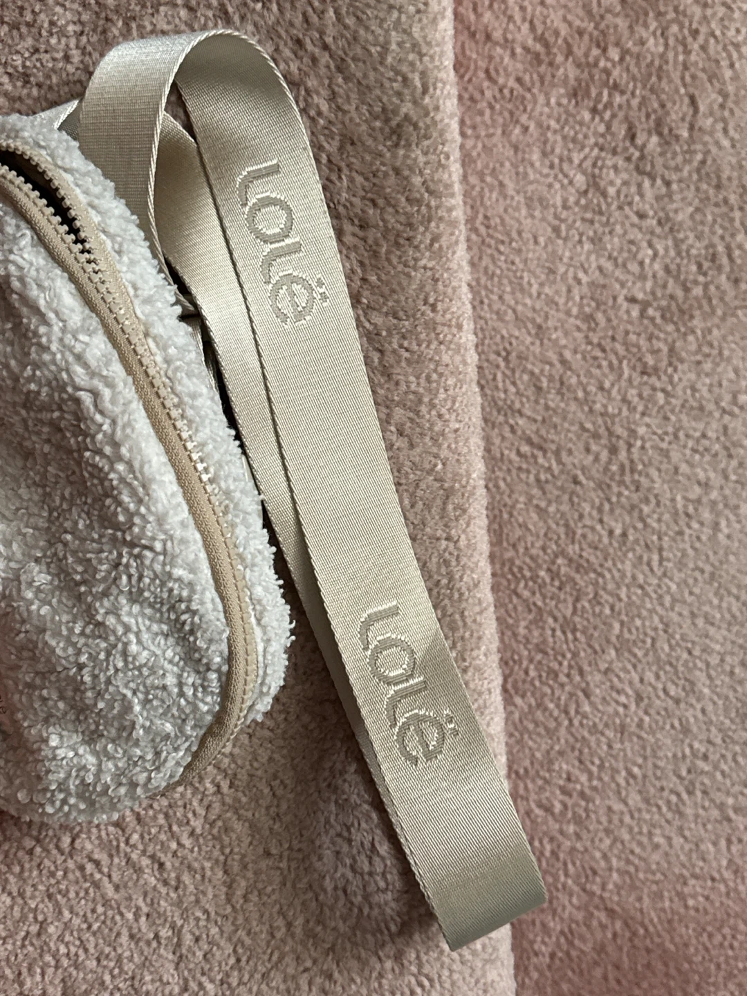 Selling a Lolë belt bag in a cozy white fleece material! It's in great condition and perfect for keeping your essentials close. The adjustable strap ensures a comfortable fit, and the neutral colour goes with everything