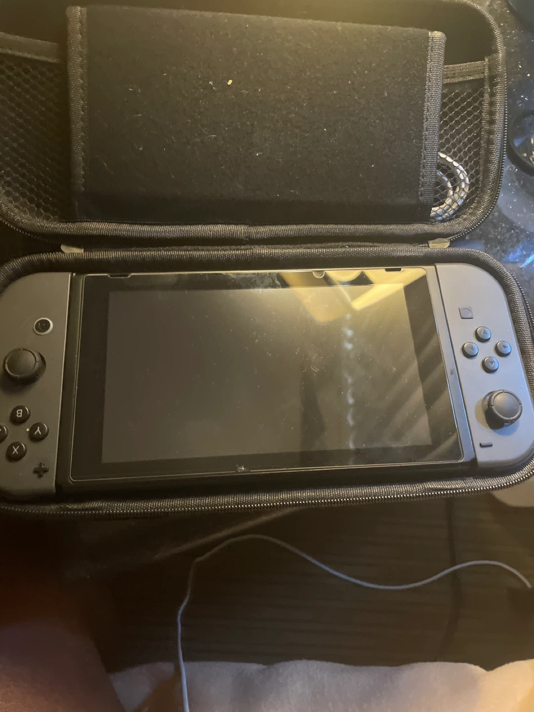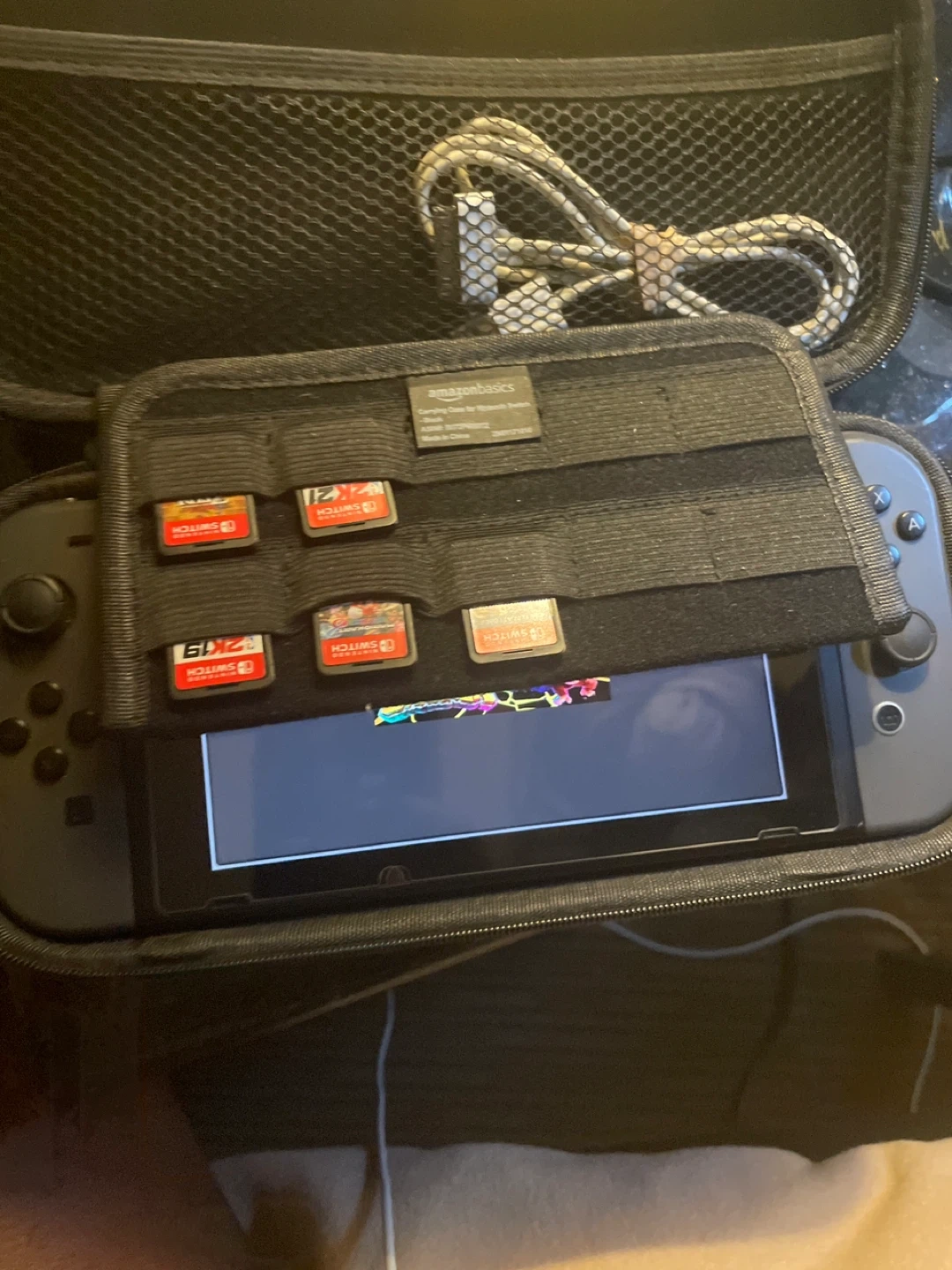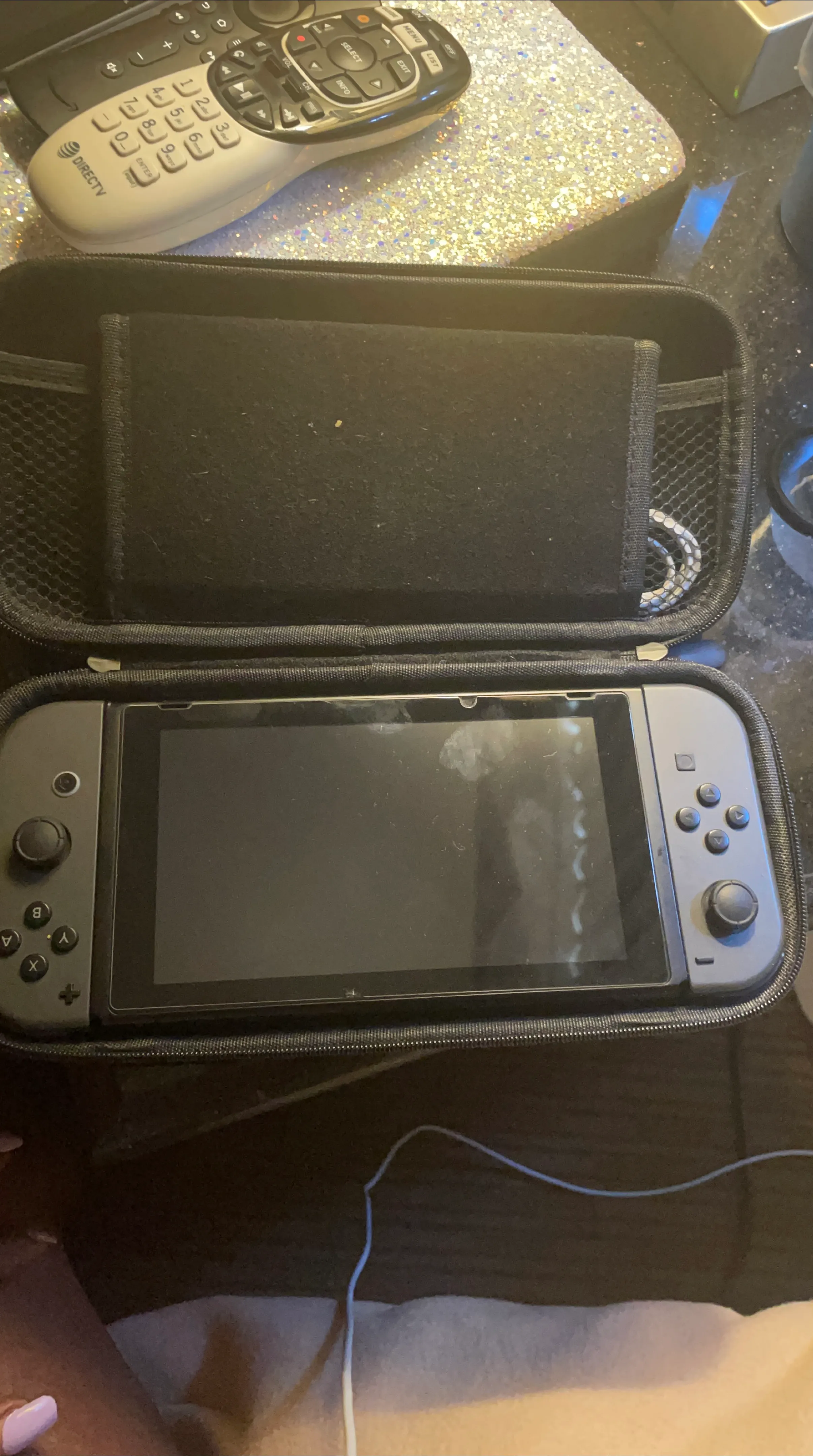 Selling a used Nintendo Switch console in gray, complete with a carrying case. It's in good condition and ready for a new home. Perfect for gaming on the go! Comes with 5 games