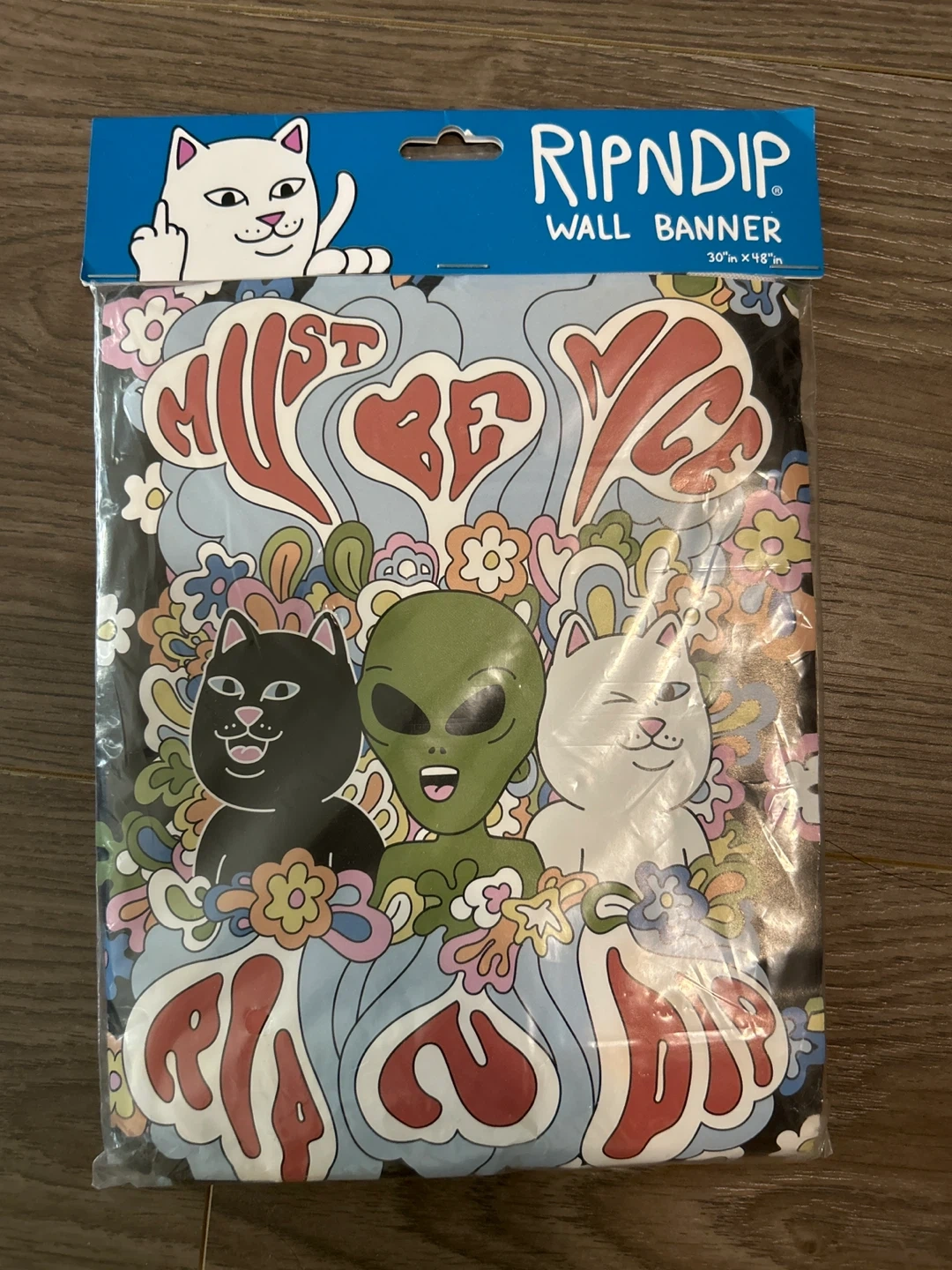 Selling a brand new Ripndip wall banner! It's still in the original packaging. The banner measures 30 inches by 48 inches and features a fun design with the Ripndip cat and an alien surrounded by flowers