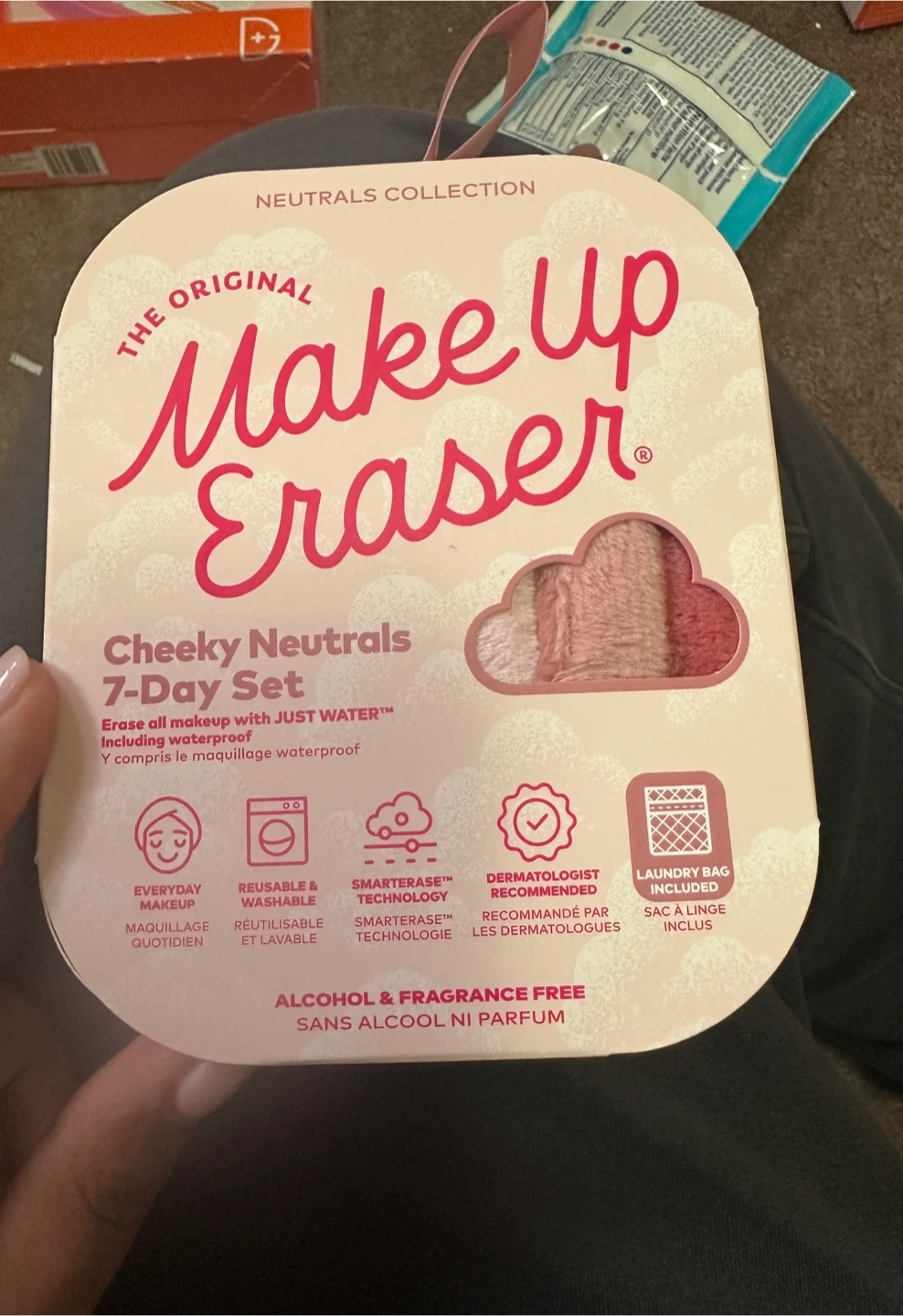 This set includes a laundry bag and is designed to erase all makeup with just water!!! It's reusable, washable, and recommended by dermatologists! Plus, it's alcohol and fragrance-free
