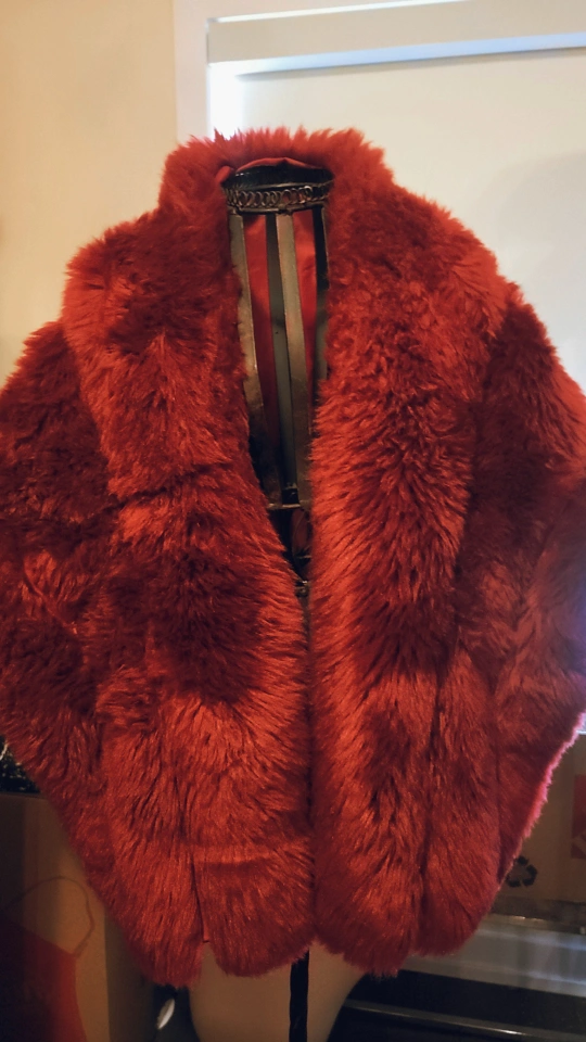 A vibrant crimson red faux fur shawl to add a pop of colour to your outfit! It's in great condition and ready for a new home Very large & thick plush!