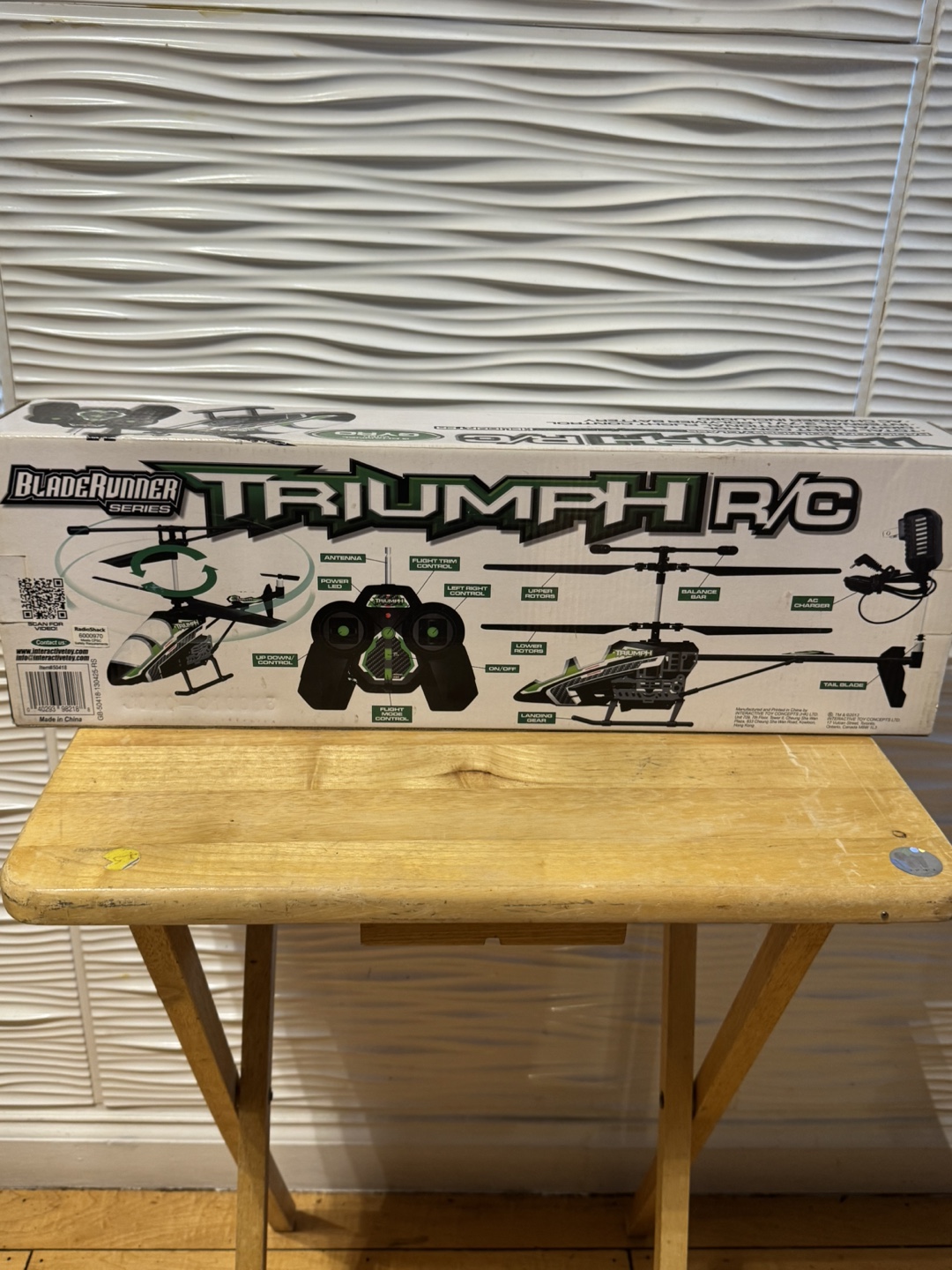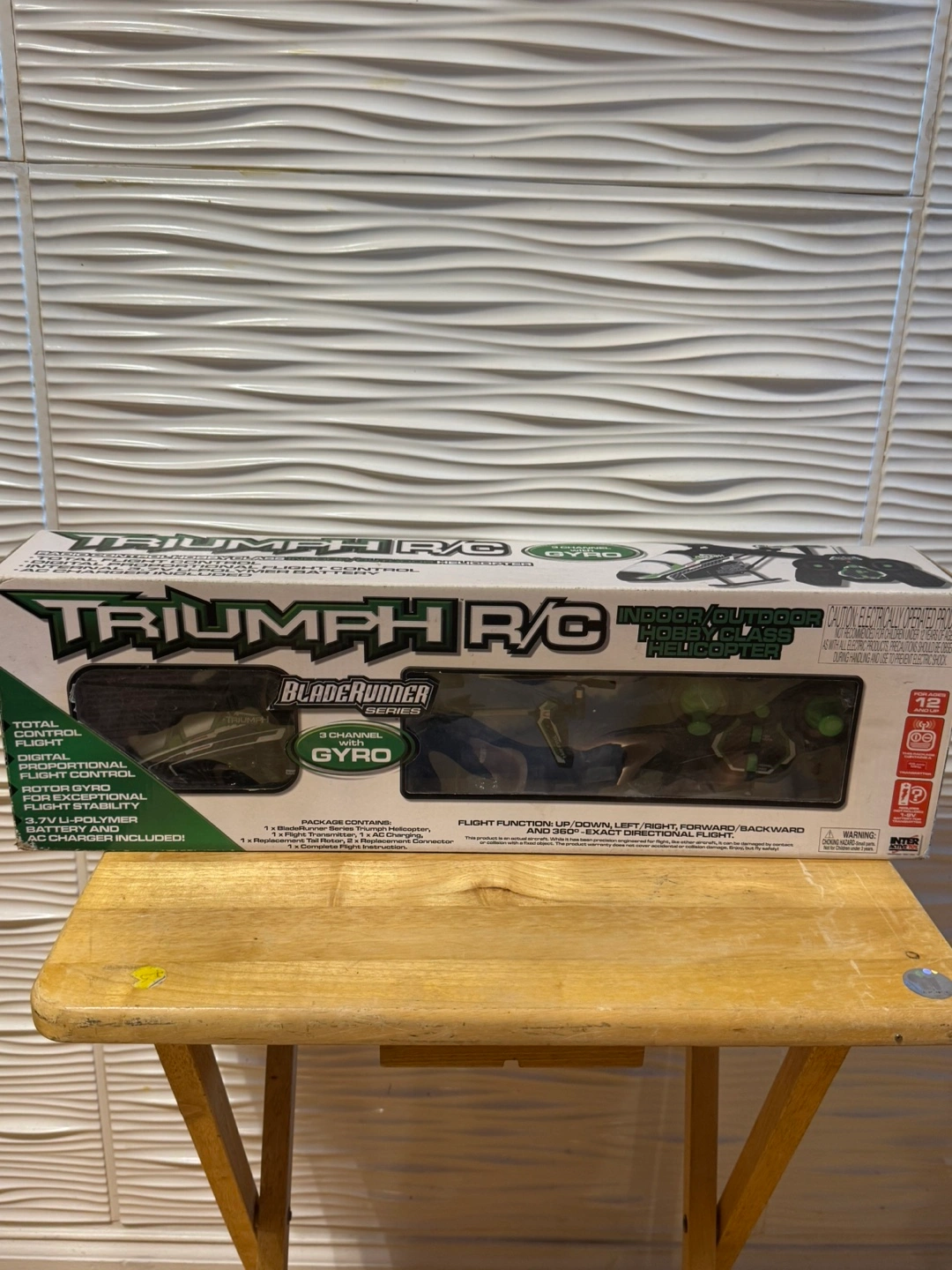 Selling a Triumph R/C Blade Runner Series indoor/outdoor helicopter! It has total control, digital proportional flight control, powerful motor, flight stability, and battery and charger included