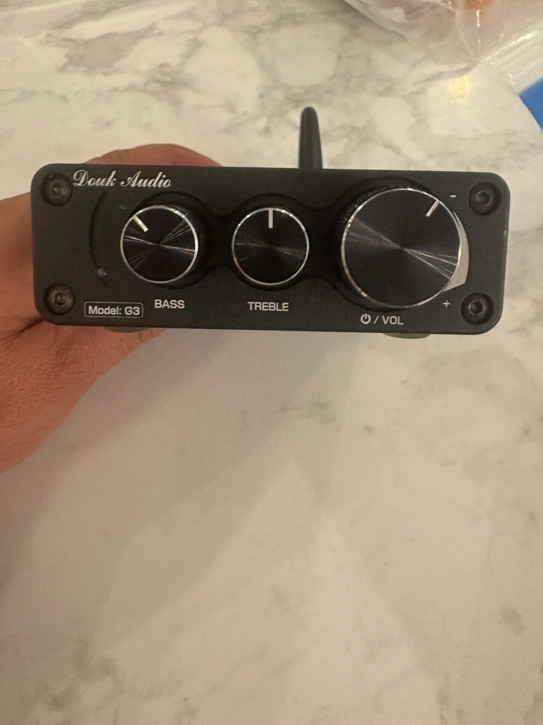 Selling a Douk Audio G3 amplifier in excellent condition! This compact amp is perfect for boosting your audio experience. It features bass and treble controls, and is super easy to hook up to your speakers. It's in like-new condition, missing cable- can buy on Amazon
