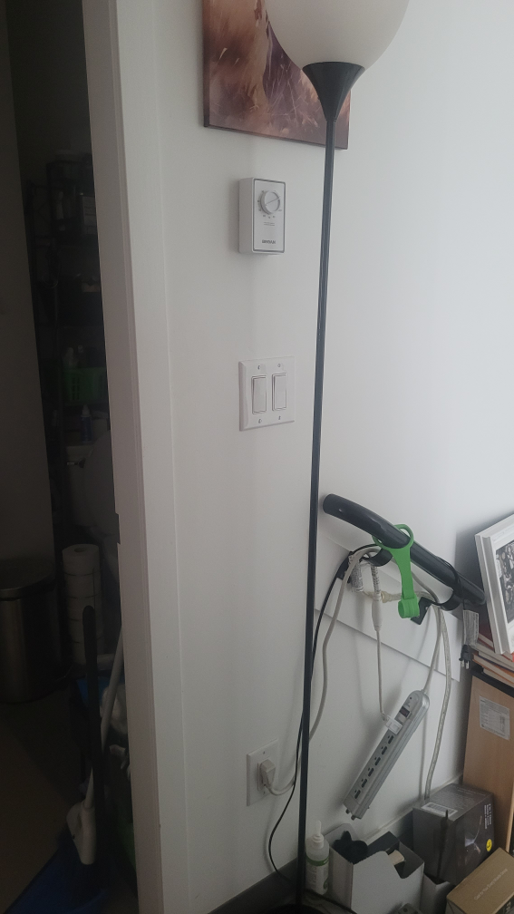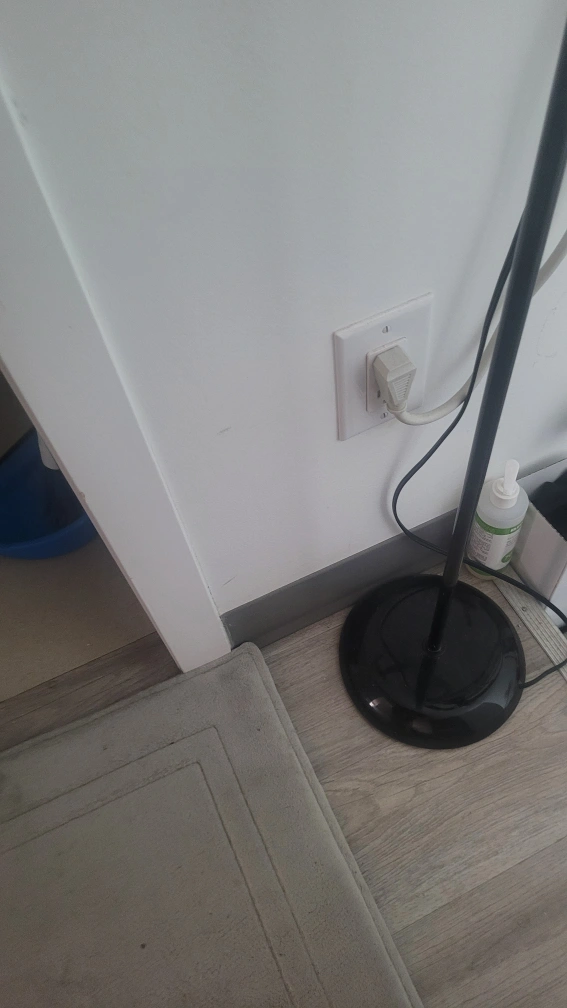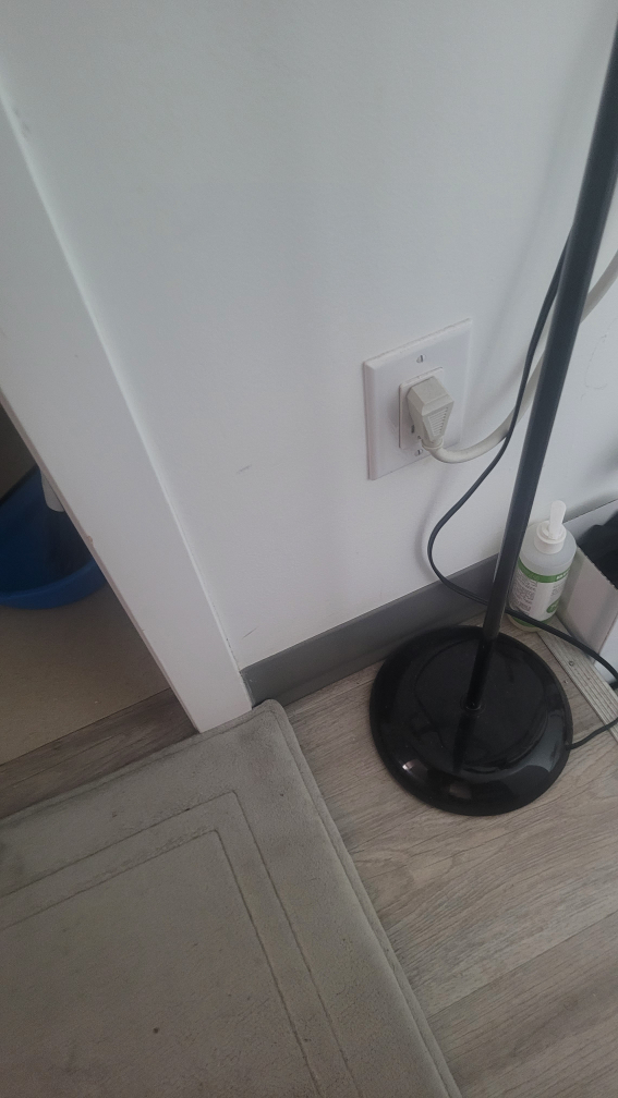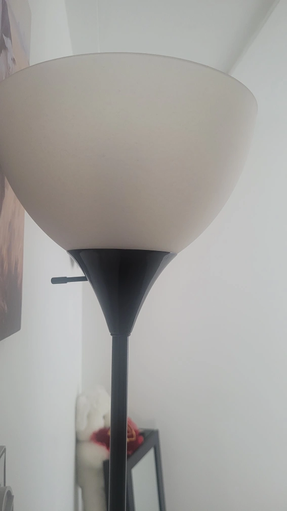 Selling a floor lamp. It has a black base and a white shade. It's in good condition and provides a nice ambient light for any room. can add a bulb for extra 2 dollars. $10 total