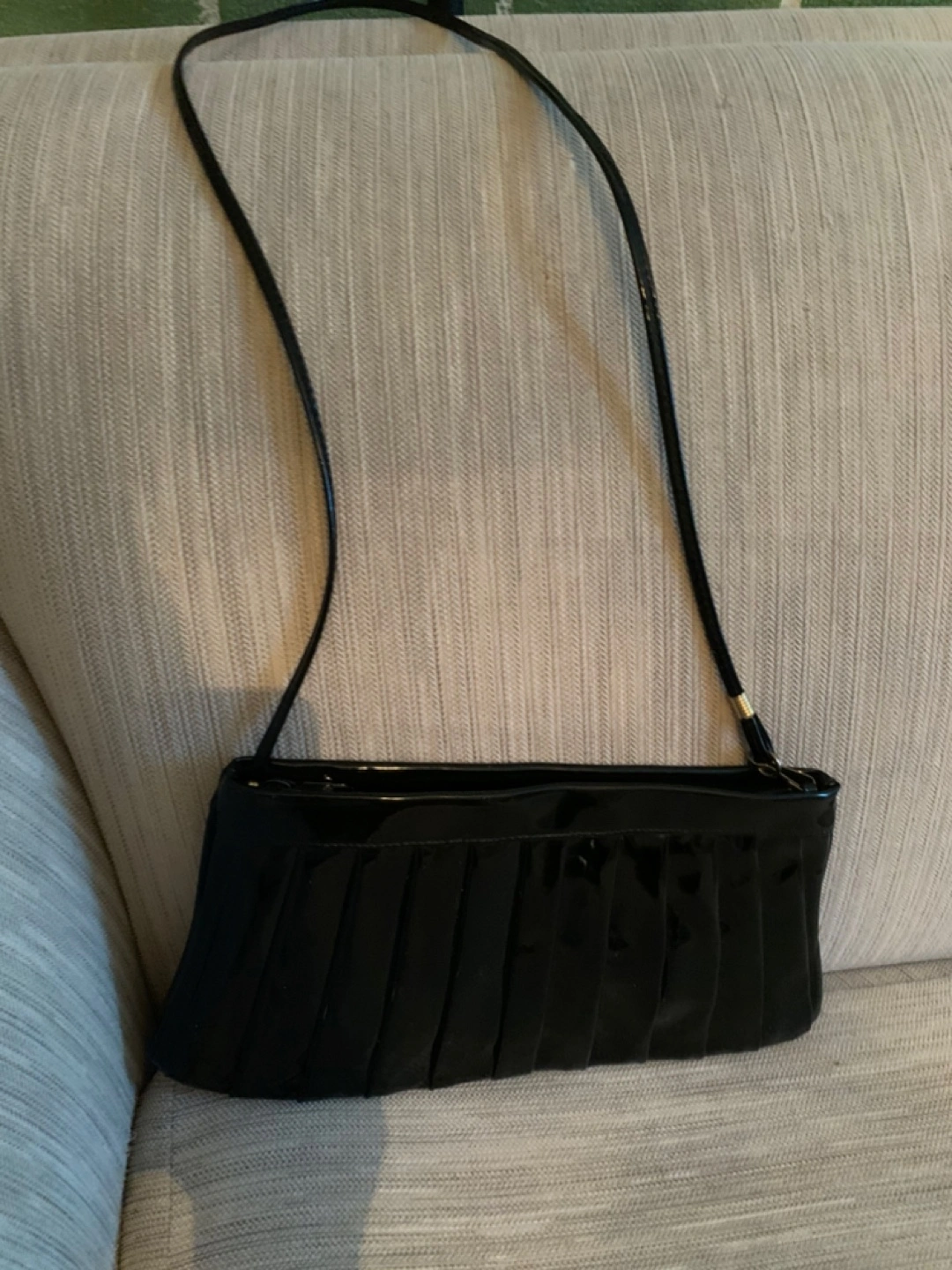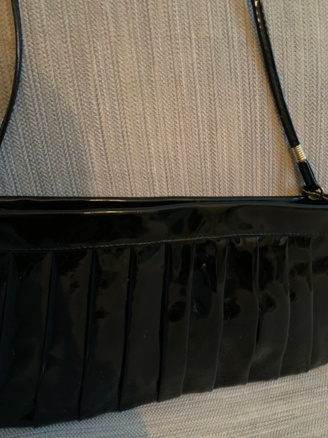 Selling a stylish black patent leather clutch purse! It's in great condition and perfect for a night out or special occasion. The purse features a sleek design with a comfortable strap. Inside, there's a convenient zippered pocket for keeping your valuables secure. Feel free to message me with any questions!