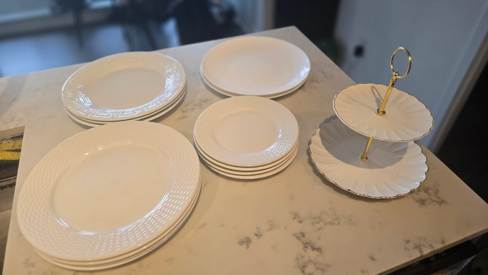 White Dinner Plates & Two-Tiered Serving Stand