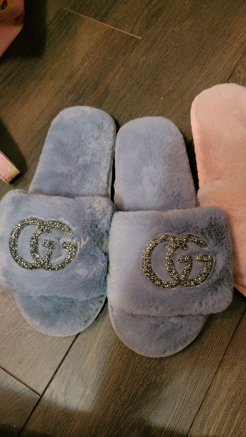 Cozy and cute fuzzy slippers in a lovely light blue colour! They're marked as size 36-37 (6-7 womens) Perfect for keeping your feet warm and comfy around the house or it can be worn outside as the soles are hard. Also have pink CC ones. See other listings π BRAND NEW never worn