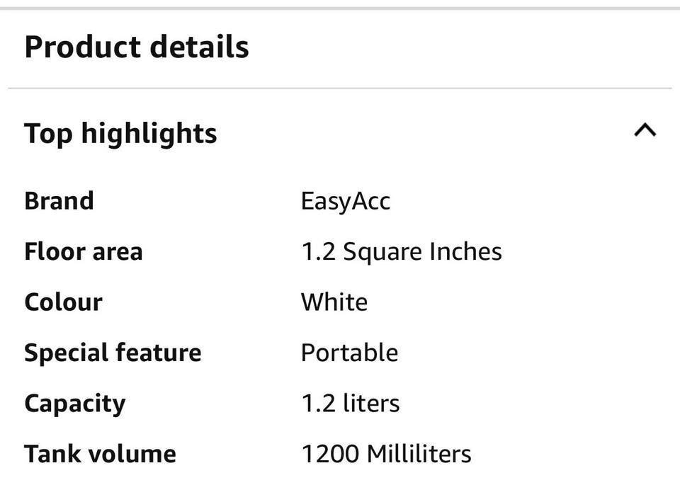38Condition: New-Open Box Retail Price: $59 Dimensions: 30.5D x 15.2W x 15.2H Centimeters EasyAcc® Dehumidifiers, 40 oz Water Tank, (450sq ft) Quiet Dehumidifiers for RV Bedroom Bathroom Closet Auto Shut off 1200ml Small Dehumidifier with Handle, 7 Lights for Closets Trailer