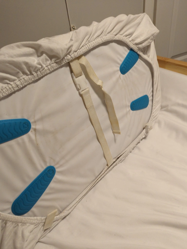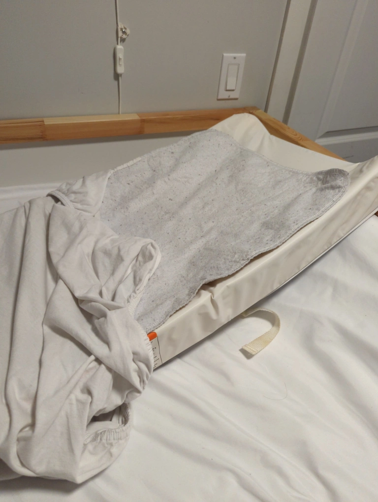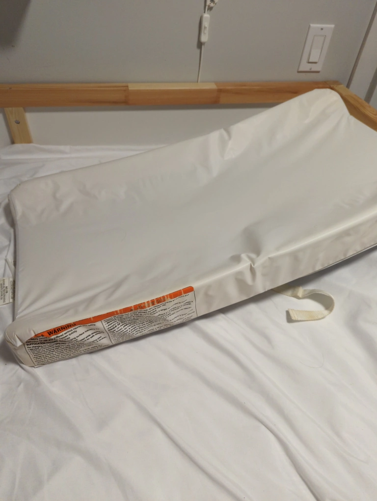 Selling a baby change pad. It's in good condition and ready for a new home. Perfect for diaper changes and keeping your little one comfortable! has a fitted sheet, underpad, seatbelt, and some grippy feet.