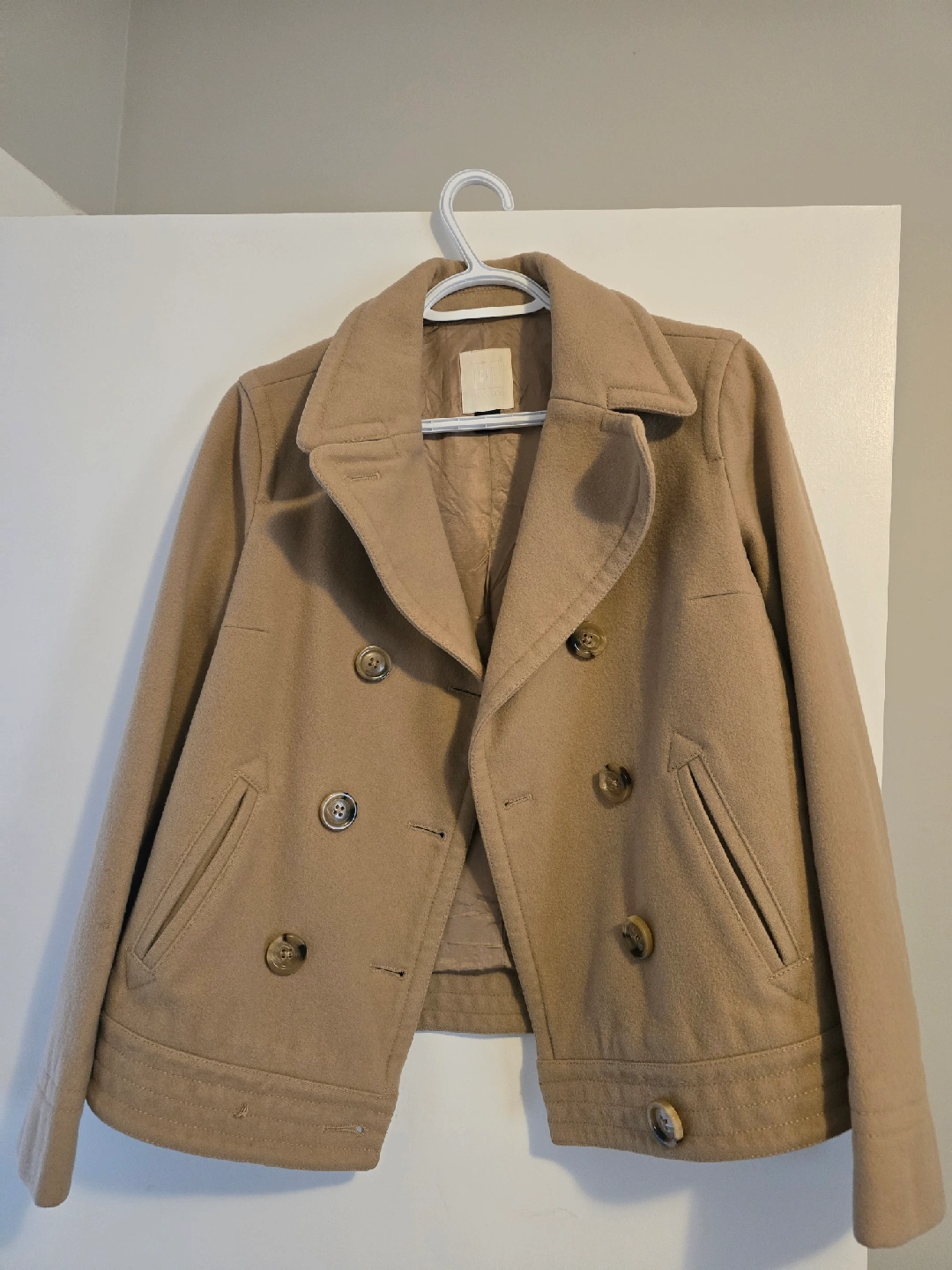 Selling a gently used GAP pea coat in size M. It's a lovely beige colour and is in great condition!