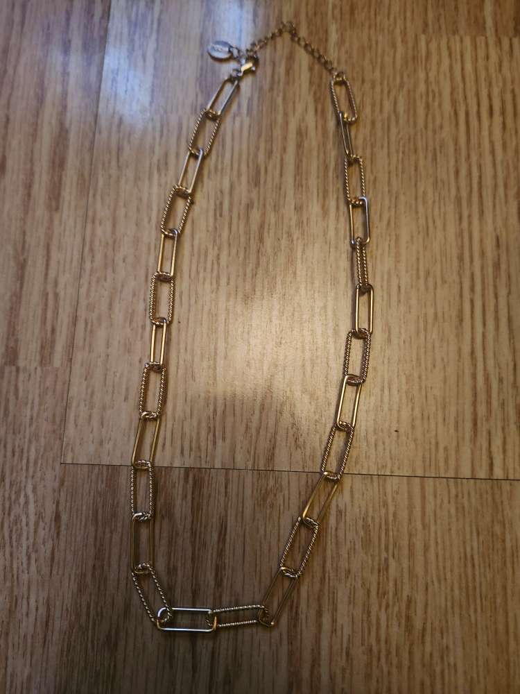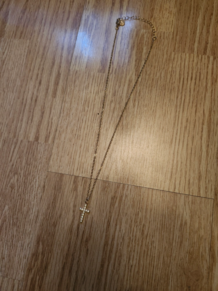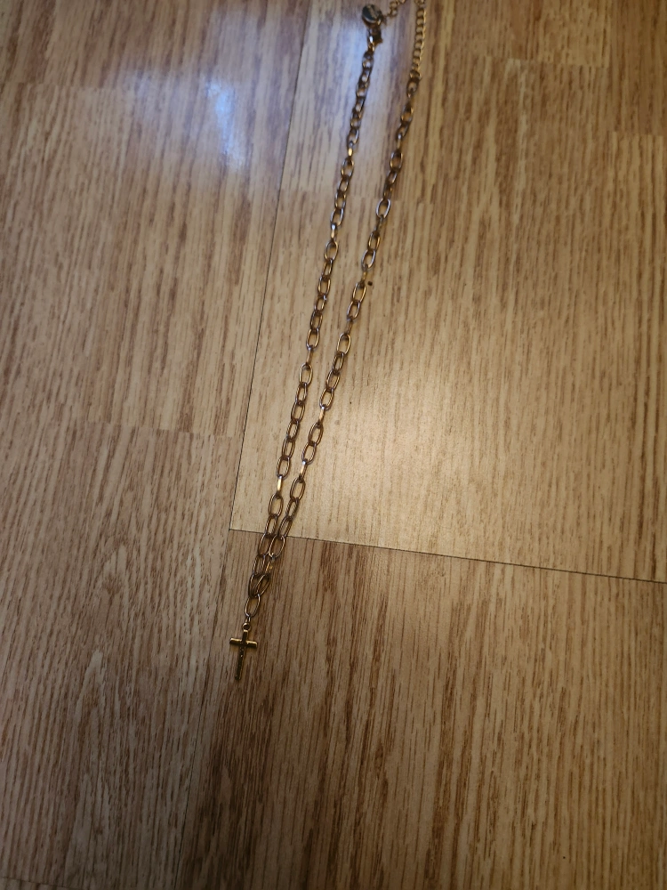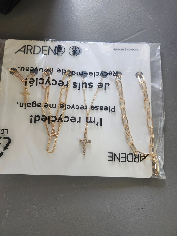 Selling a brand new Ardene gold chain necklace set! It includes 2 paperclip chain necklaces and 2 cross pendant necklaces. 4 necklaces total Comes in original packaging!