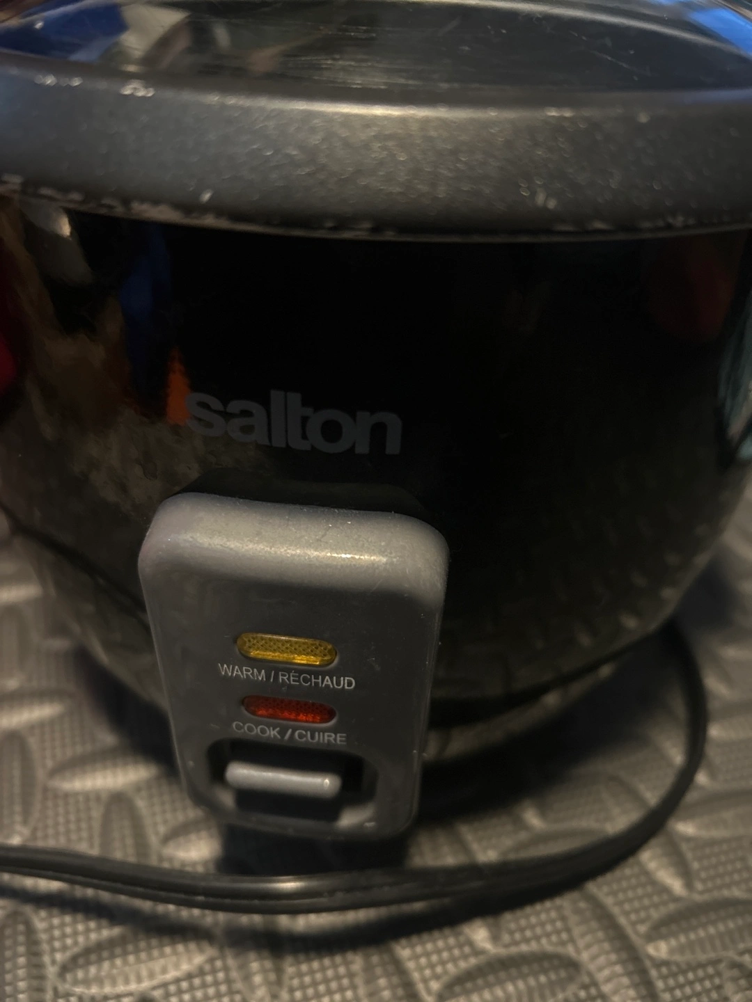 If bought over $100, throw it in for free. Selling a used Salton rice cooker. It has some wear and tear, as you can see in the photos, especially inside the pot. Still works for cooking rice!