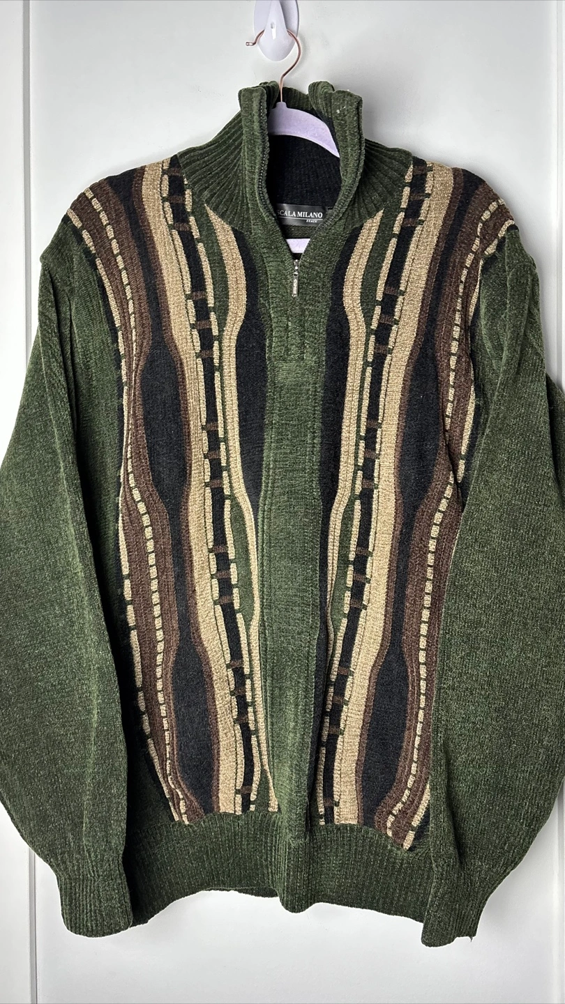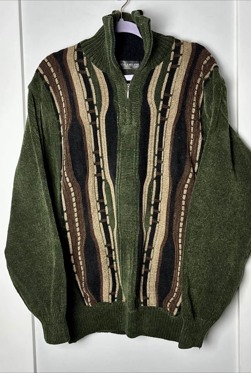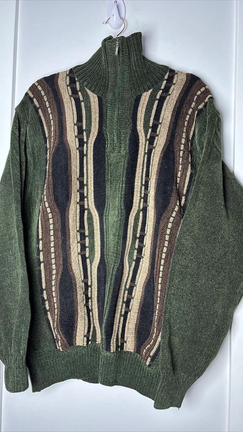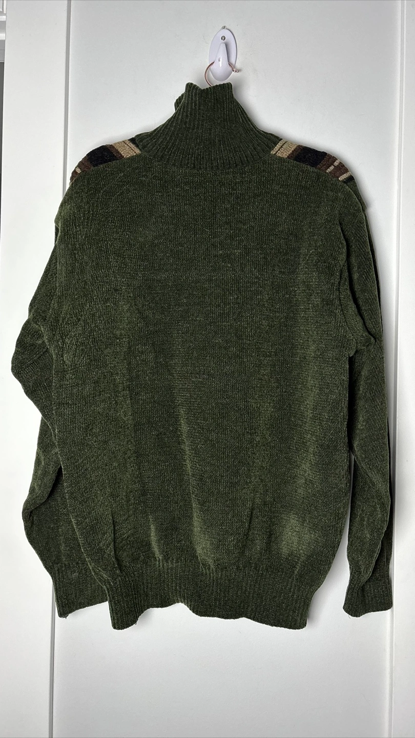 Vintage b.u.m. Equipment Olive Green and Brown Men's Sweater