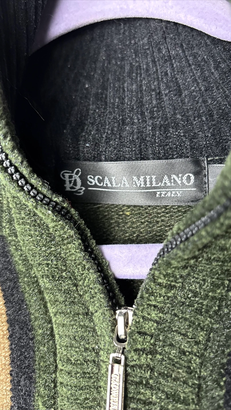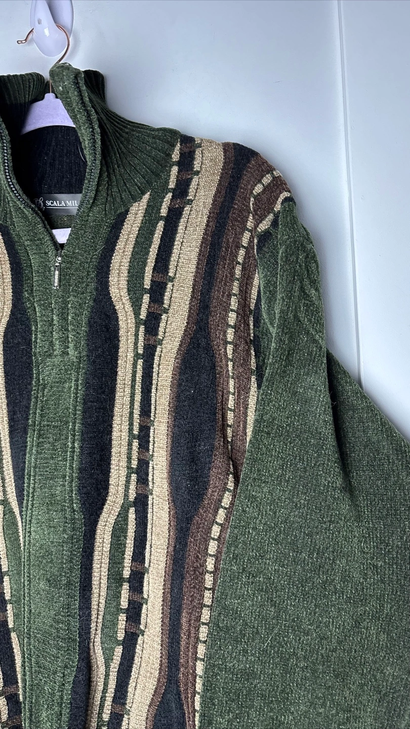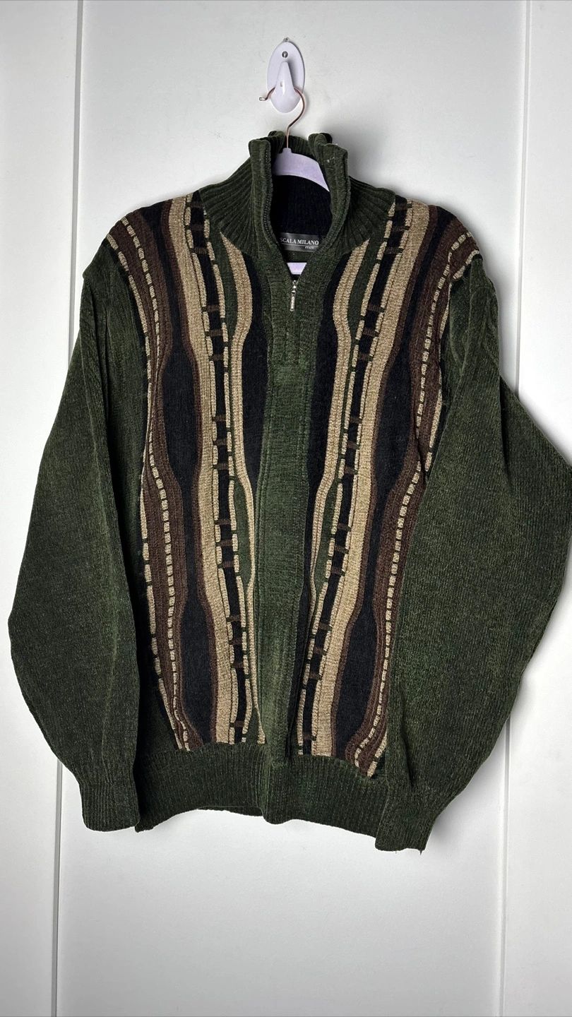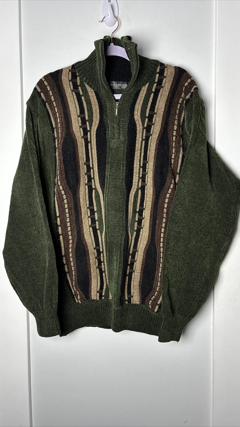 Vintage b.u.m. Equipment Olive Green and Brown Men's Sweater