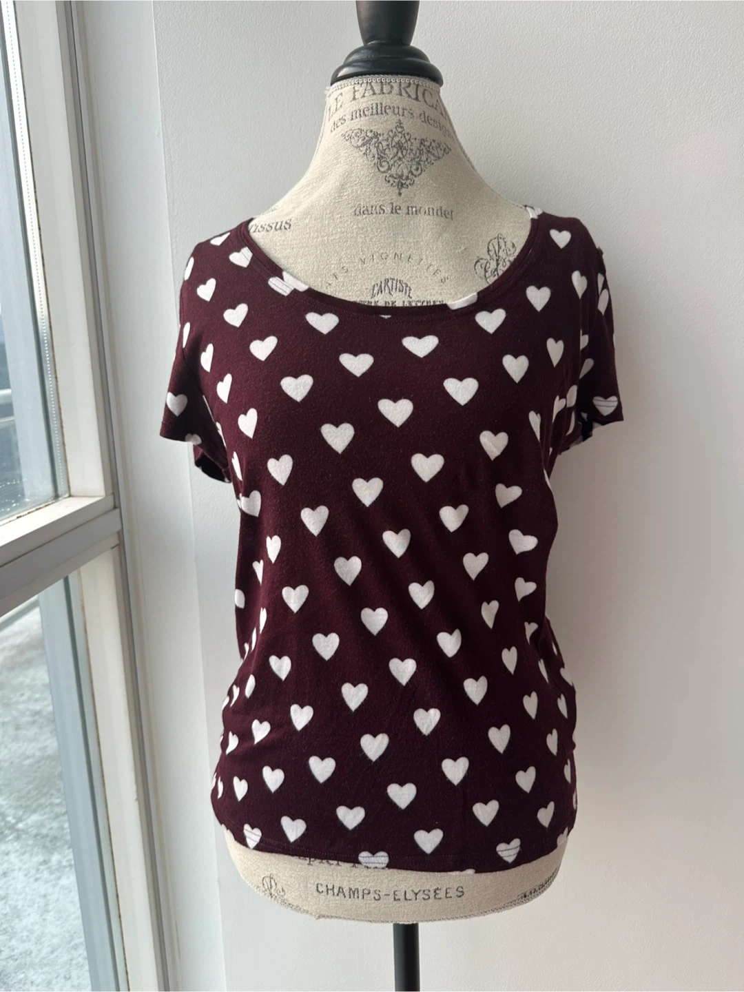 Selling a cute Burberry Prorsum top with a heart print! It's a size small and made in Italy. The main colour is a lovely dark red/burgundy. Perfect for adding a touch of designer flair to your wardrobe