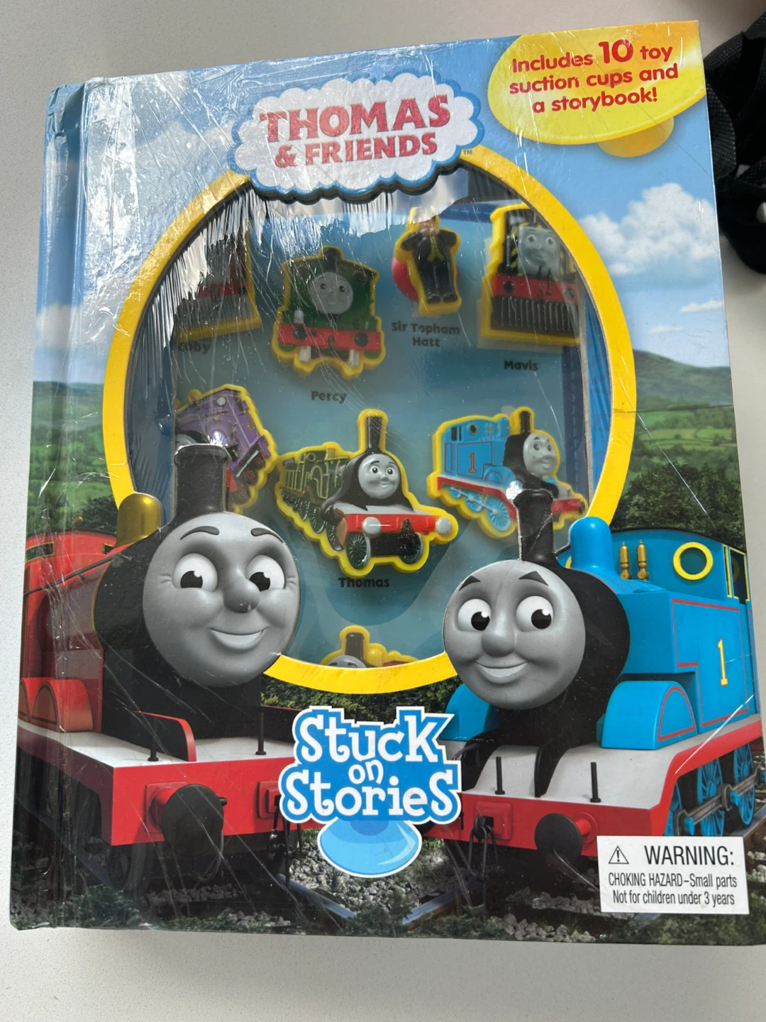 Thomas & Friends Stuck on Stories book! It includes 10 toy suction cups and a storybook. Great for little ones who love trains and stories