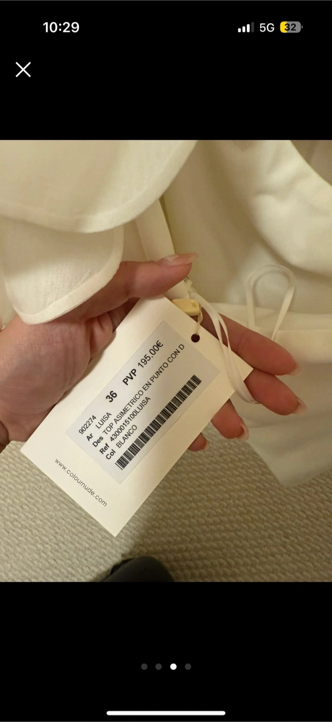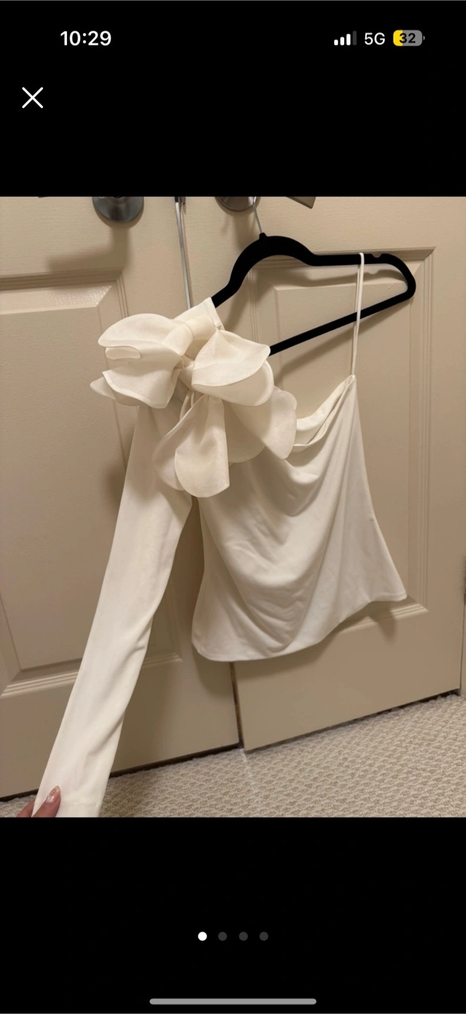 Selling a Colour Nude asymmetric top in size 36. This stylish top features a unique one-shoulder design with a large bow detail. The colour is blanco (white).