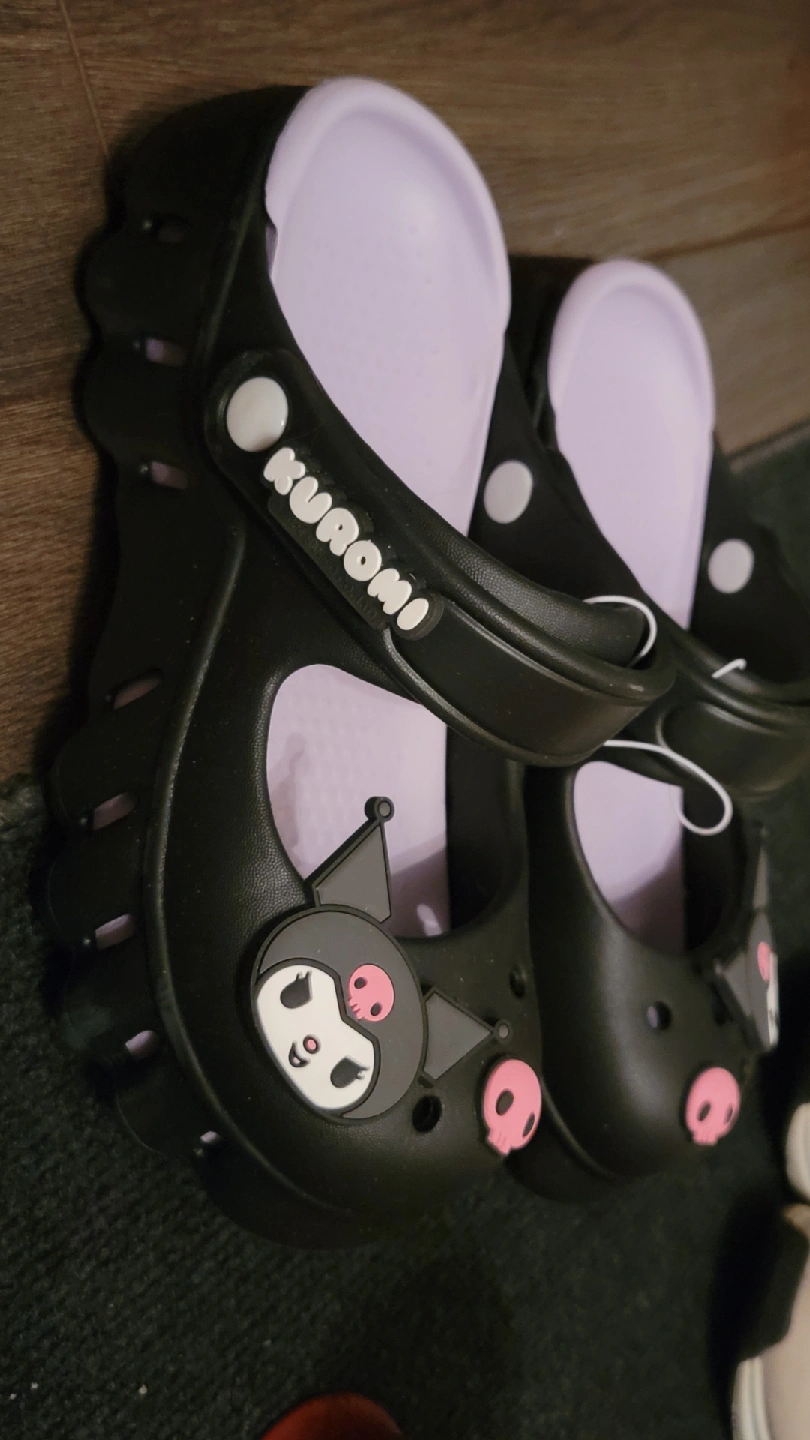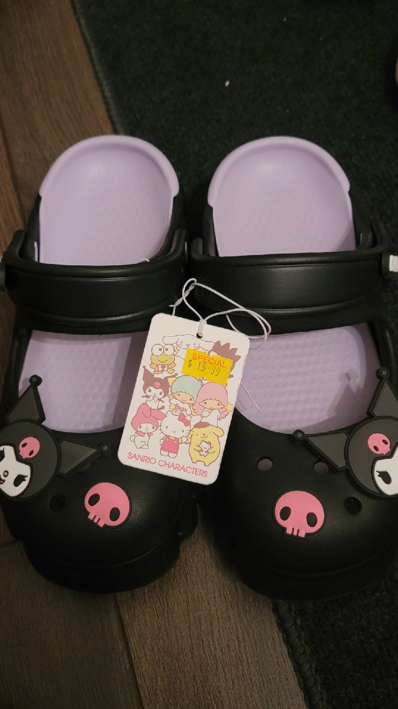 Super cute pair of Kuromi clogs (like crocs) They are brand new with the tag still attached. Size is 36-37, which is 6 or 7