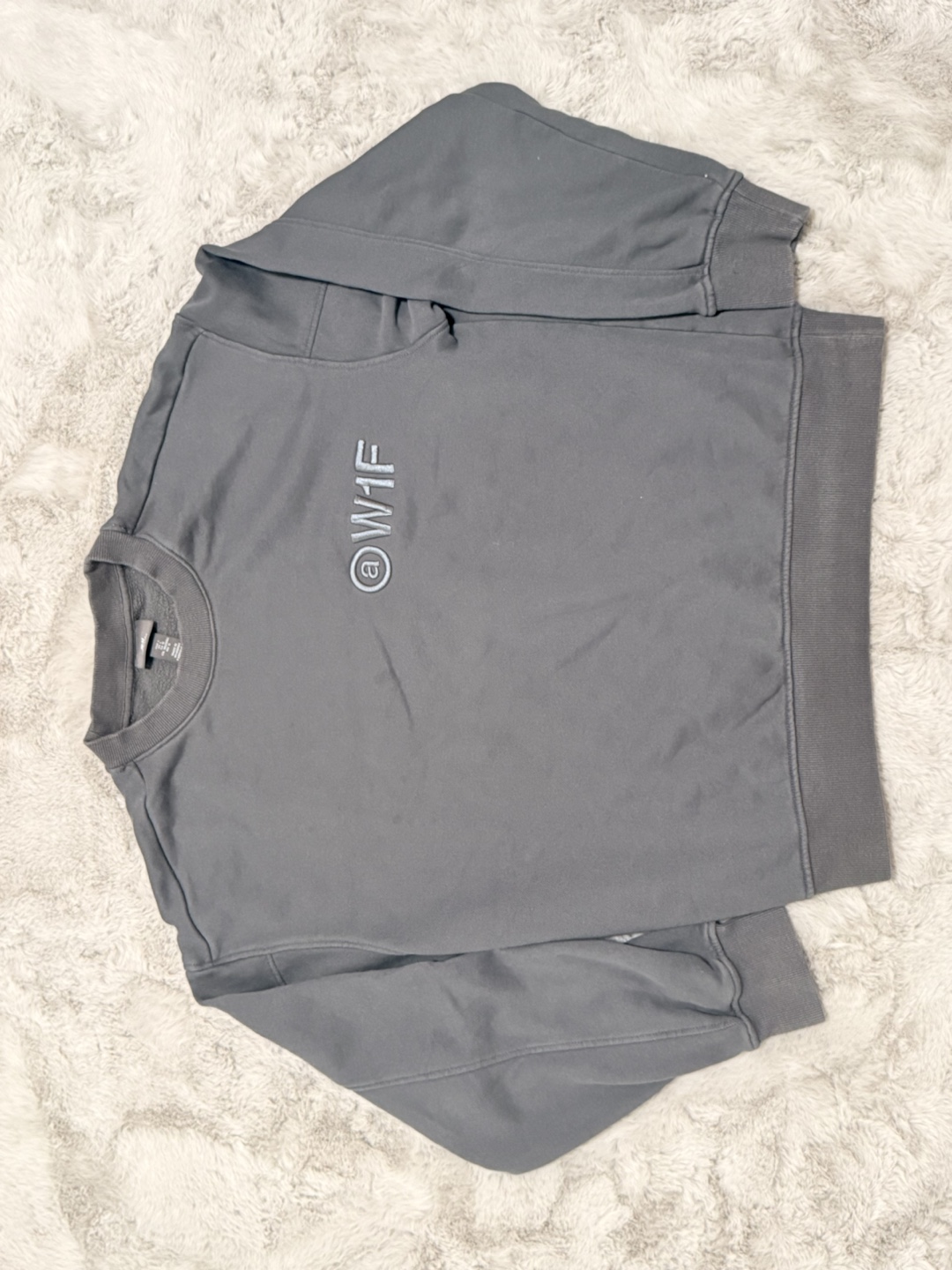 Cozy H&M crewneck sweatshirt in a nice grey colour! It features a subtle W1F design on the front. It's a size Large and in great condition. Perfect for layering or just lounging around