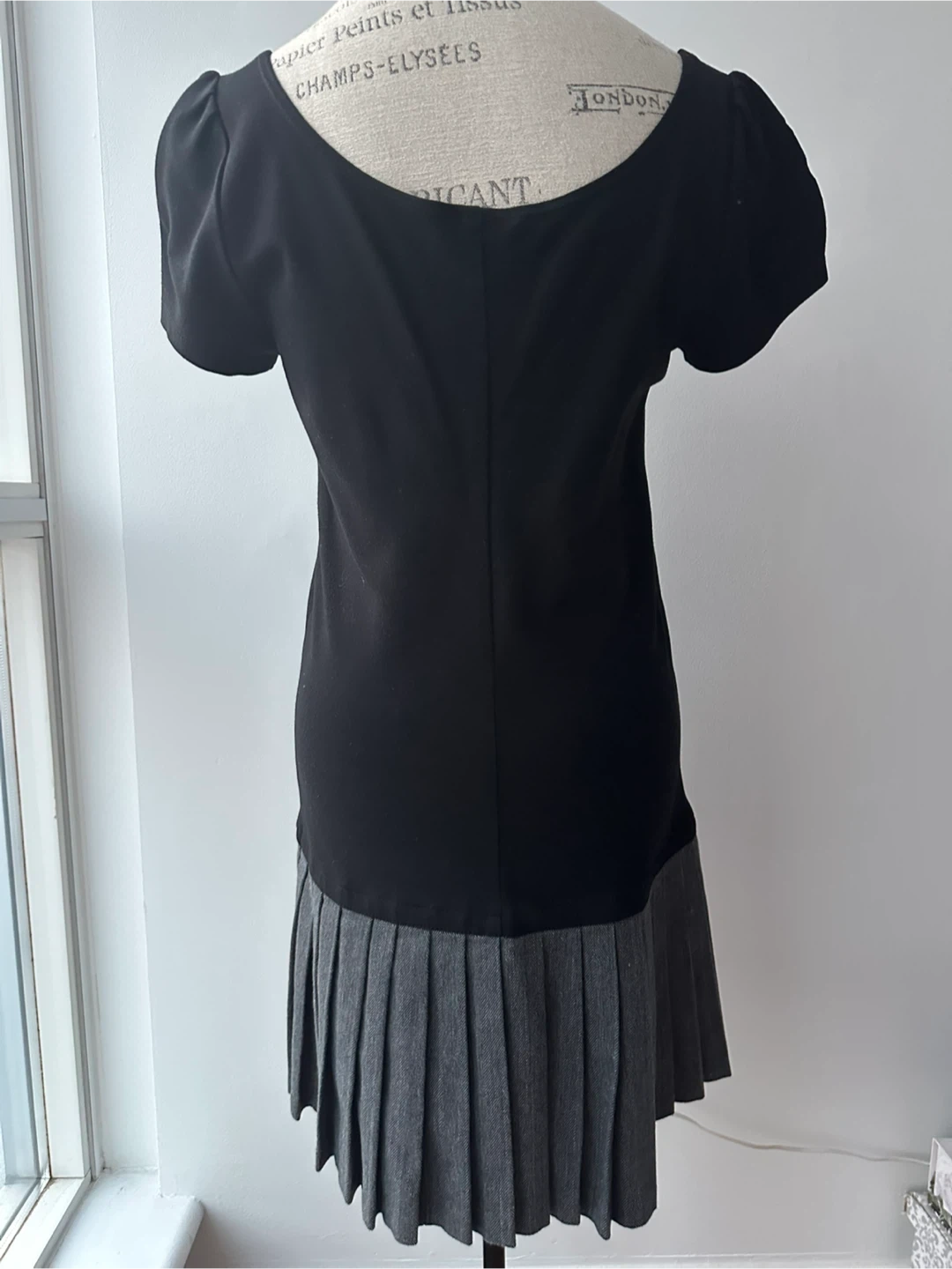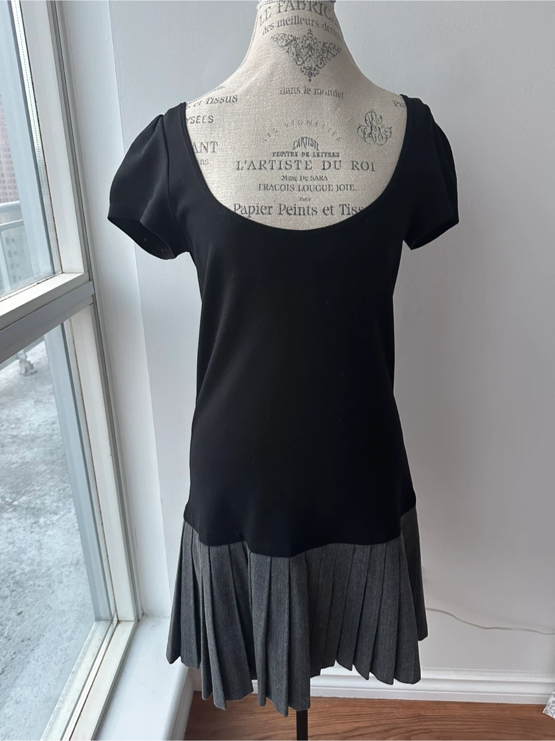 A perfect dress for layering. It is a black stretchy top and a grey pleated bottom. It's in great condition and ready for a new home! Perfect for dressing up or down.
