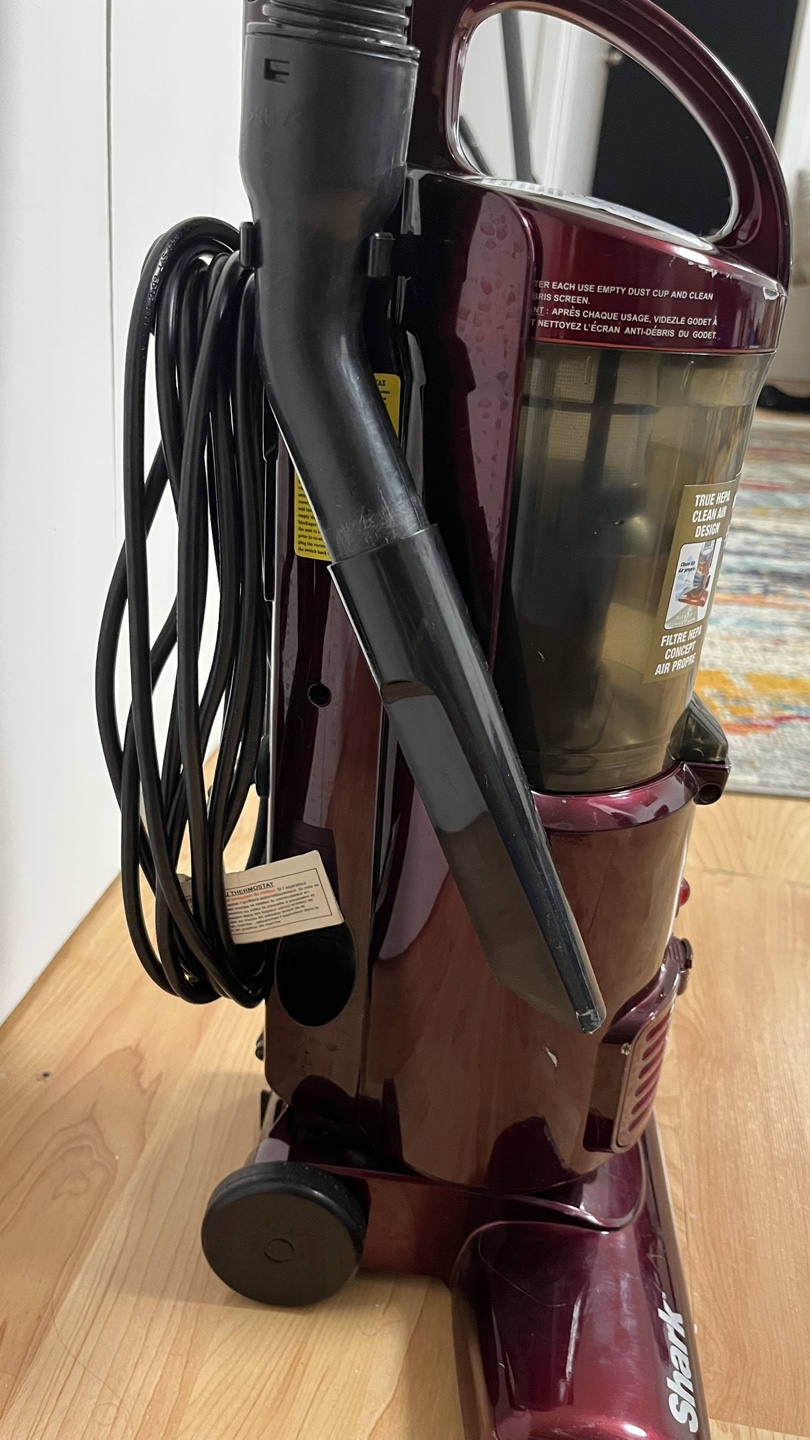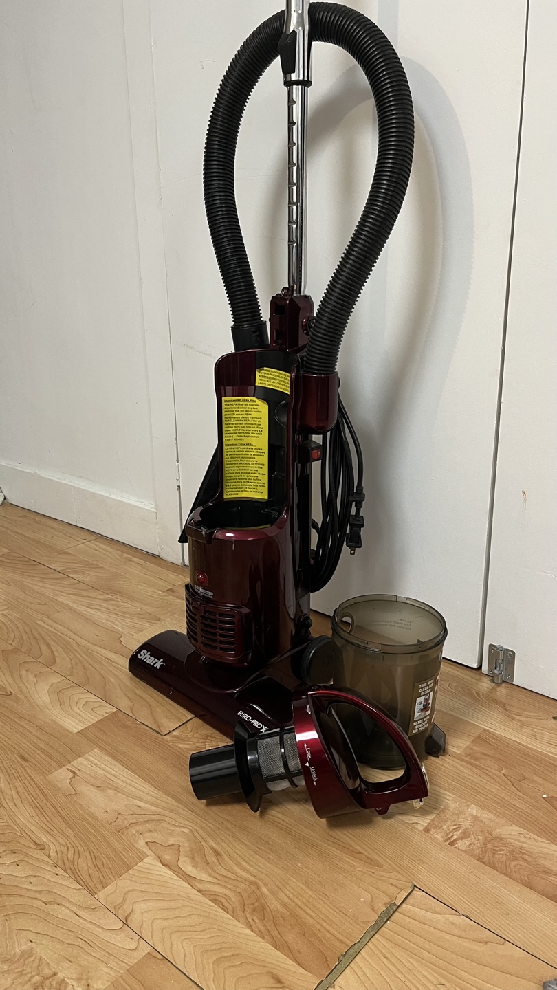 Selling a Shark Euro-Pro XL vacuum cleaner. It's in great condition and ready to help keep your place tidy! It features a maroon colour.