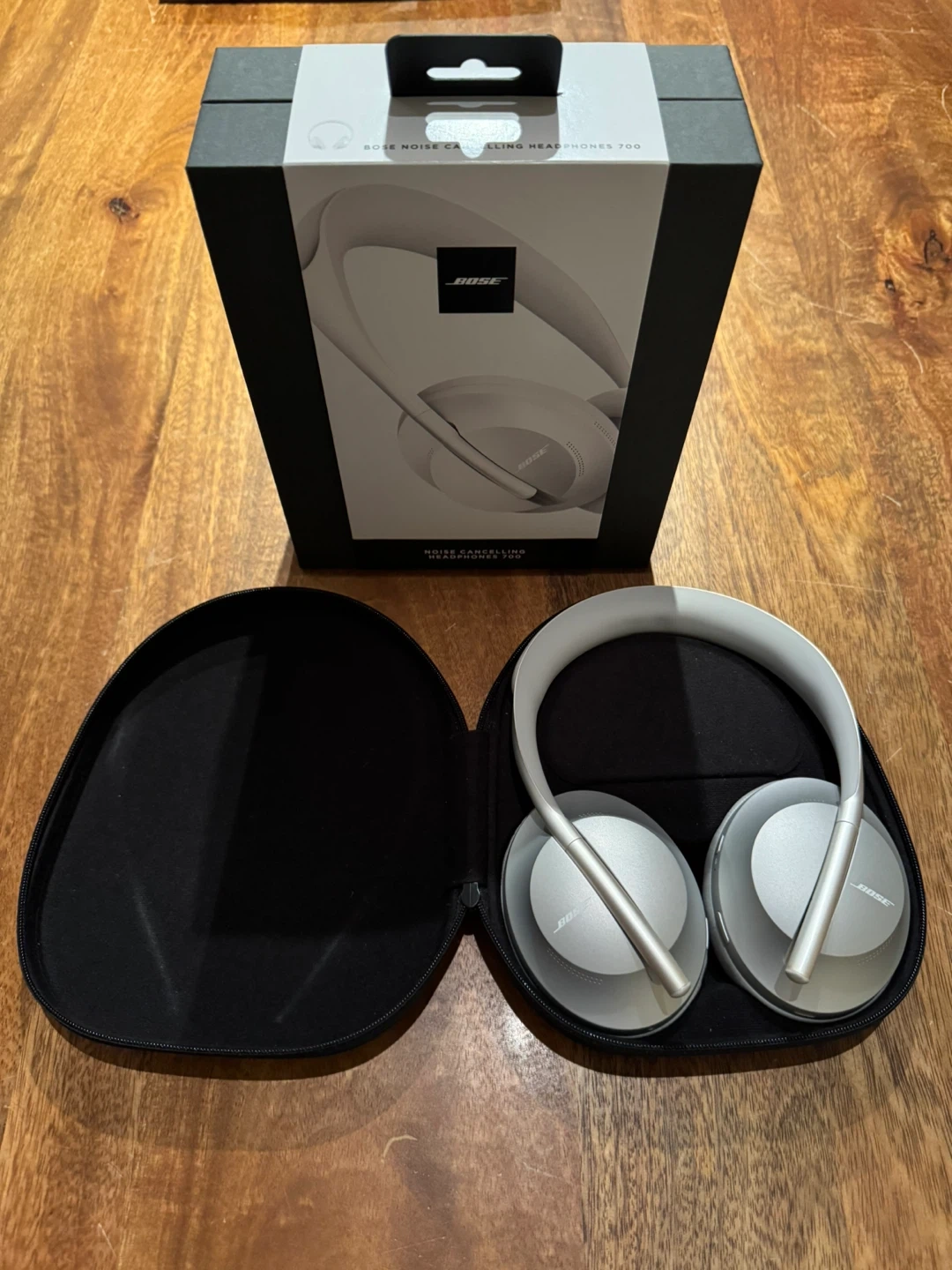 Selling a pair of Bose Noise Cancelling Headphones NC700 in silver! They come with the original box and carrying case, as well as the original audio cable and charging cable. Great for travel or just relaxing at home!