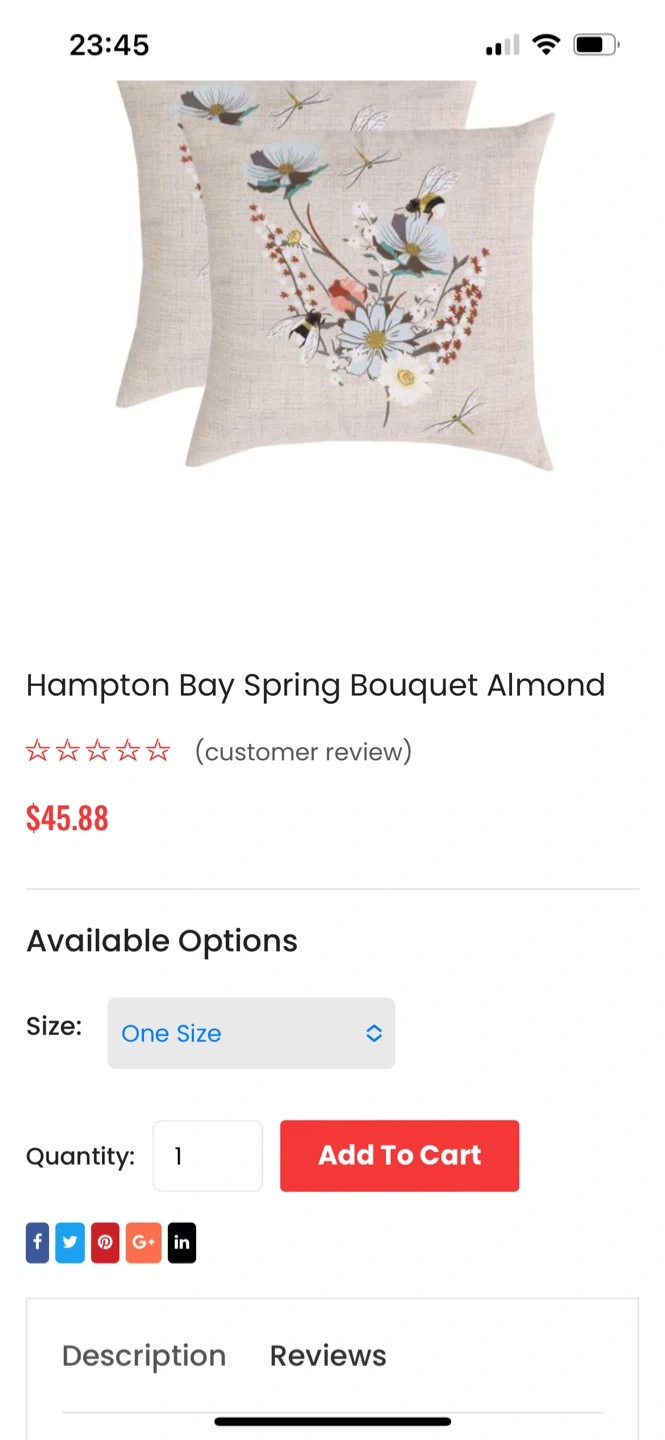 $20 ea and 2 for $40. Add a touch of spring to your home with this Hampton Bay pillow! The Spring Bouquet Almond design features bees and flowers. Originally bought for $45.88. Size is one size.