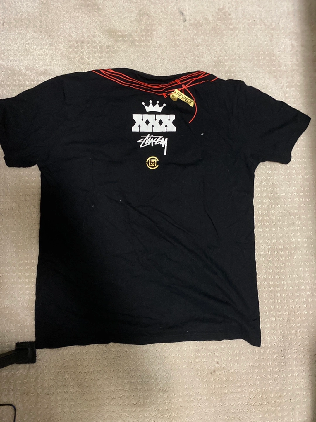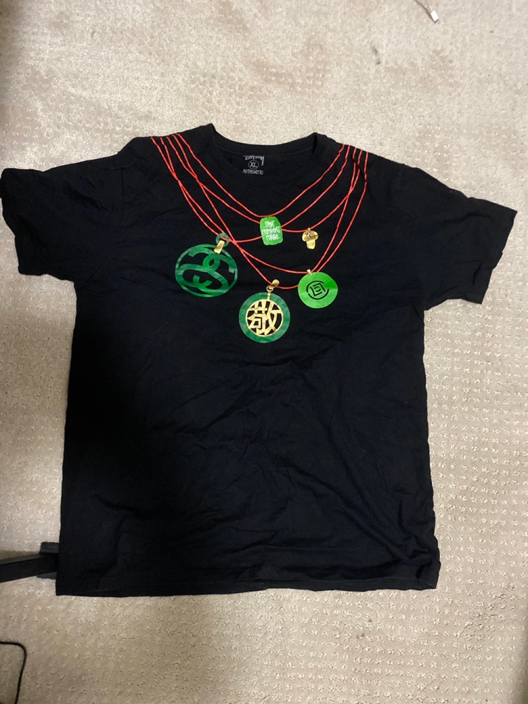 10Selling a black vintage Stussy t-shirt. It has a unique design on both the front and back. Perfect for casual wear.