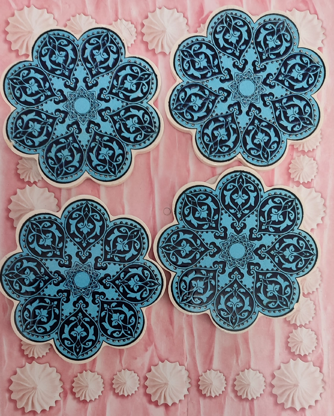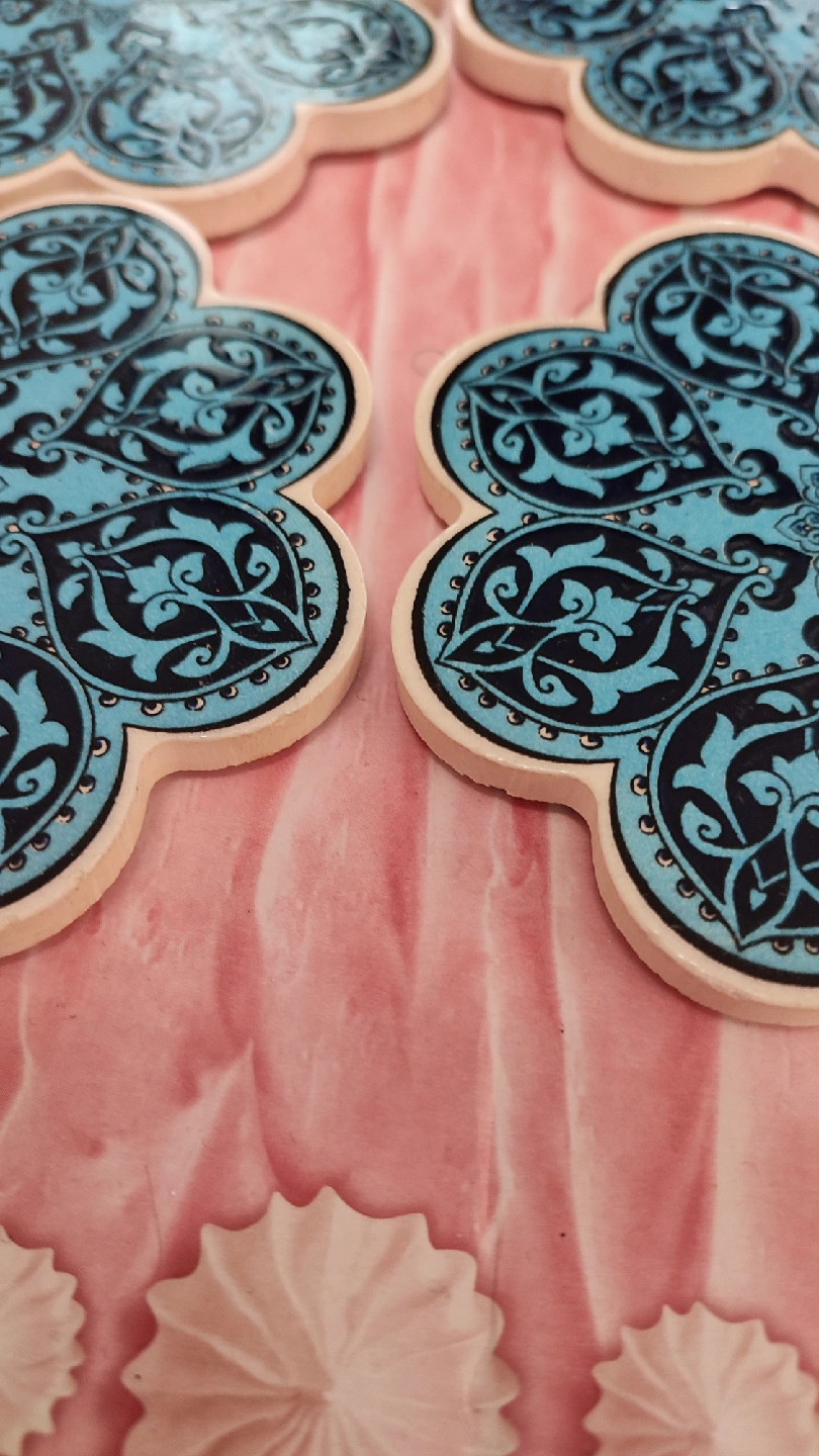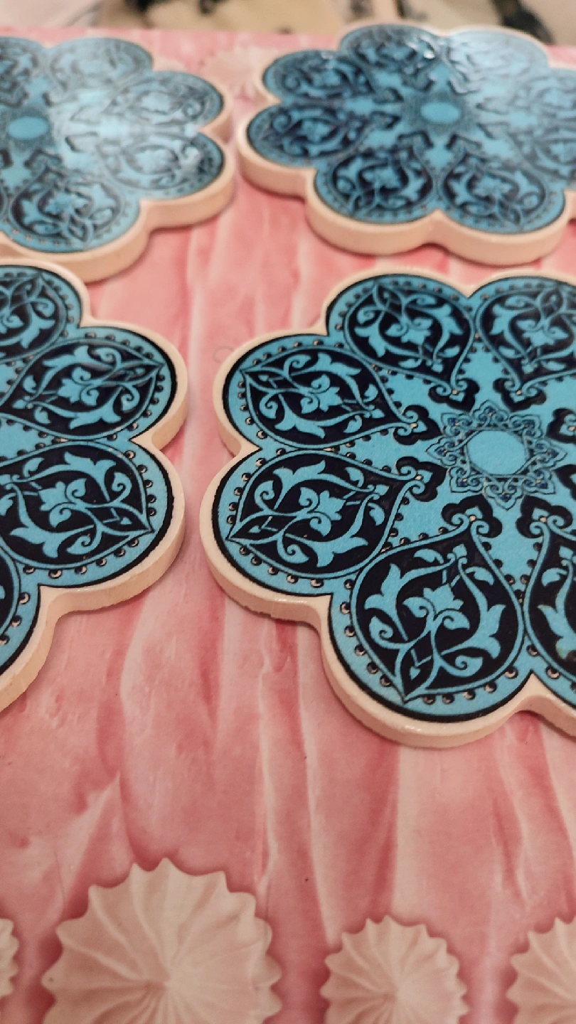 🥕These are a set of four coasters with a beautiful blue and black pattern. They are perfect for protecting your furniture and adding a touch of style to your home. They look great on any table!
