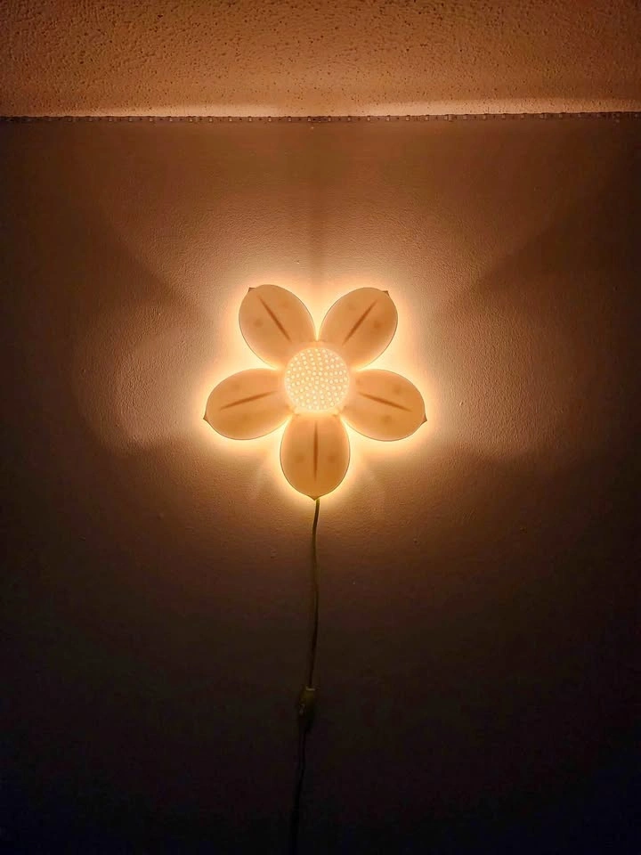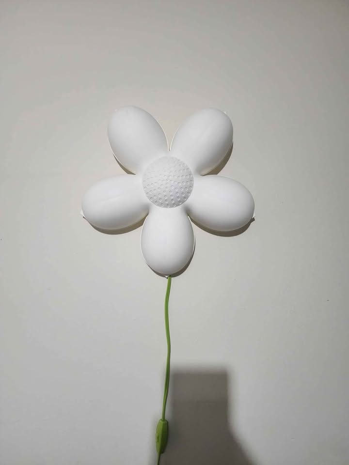 This white flower-shaped night light provides a soft, ambient glow, perfect for a child's room or hallway. It's in used condition and ready to bring a bit of floral charm to your home.