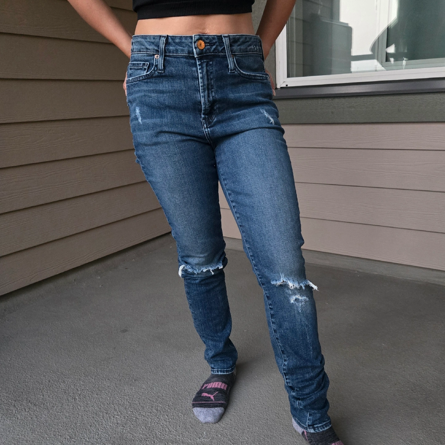 Selling a pair of distrssed denim jeans from The Castings! They're in great shape and ready for a new home. High rise, full length Skinny fit