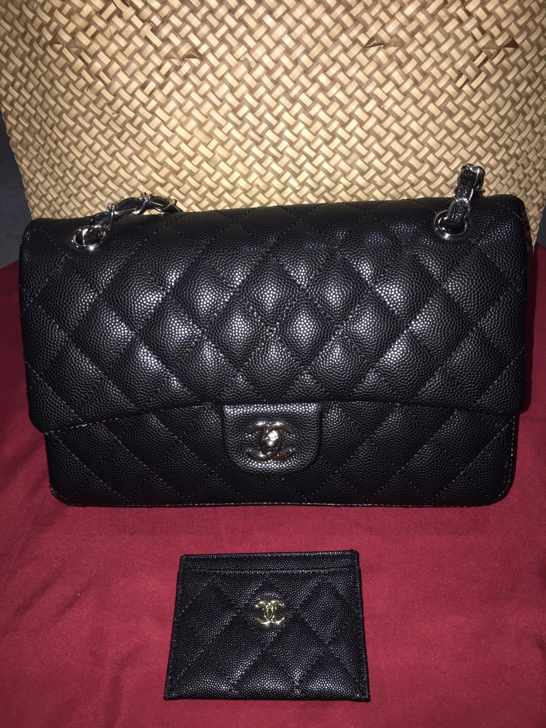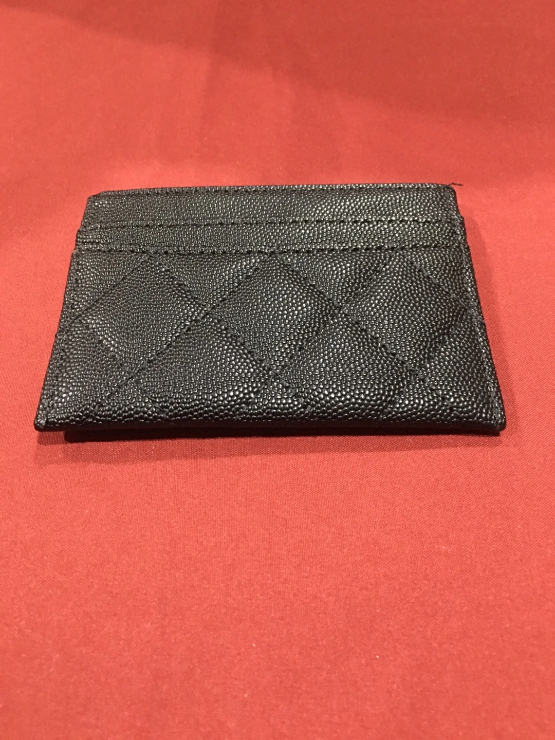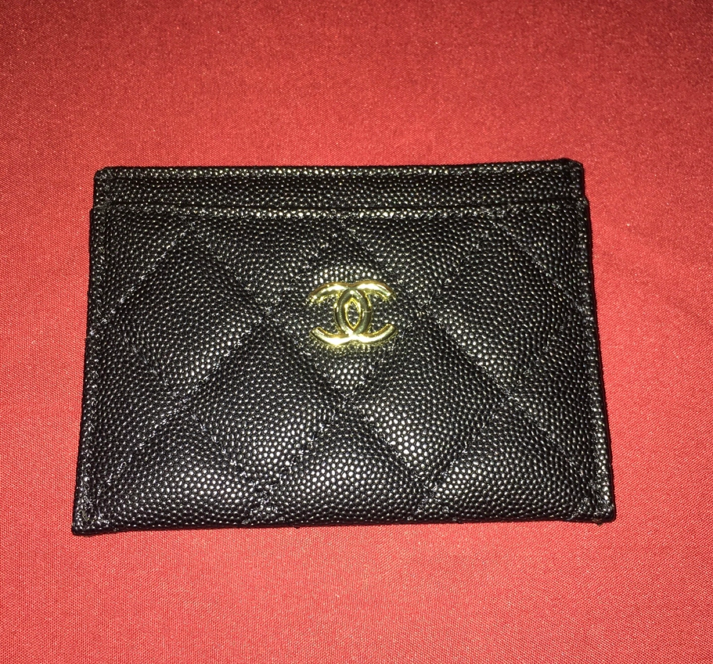 Classic Chanel quilted shoulder bag in black. It's in great brand new condition. The bag measures approximately 11 inches in length. Comes with a card holder.