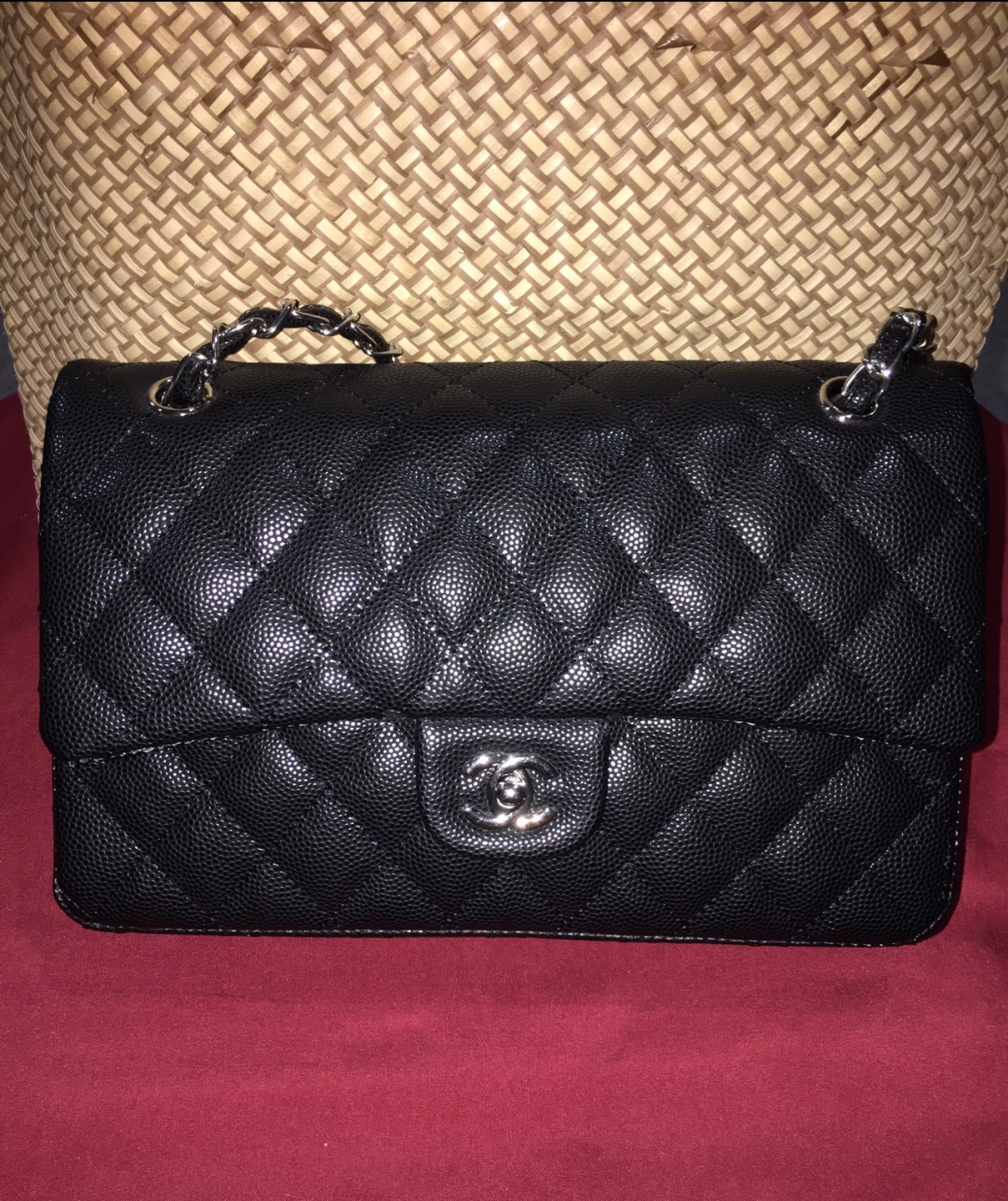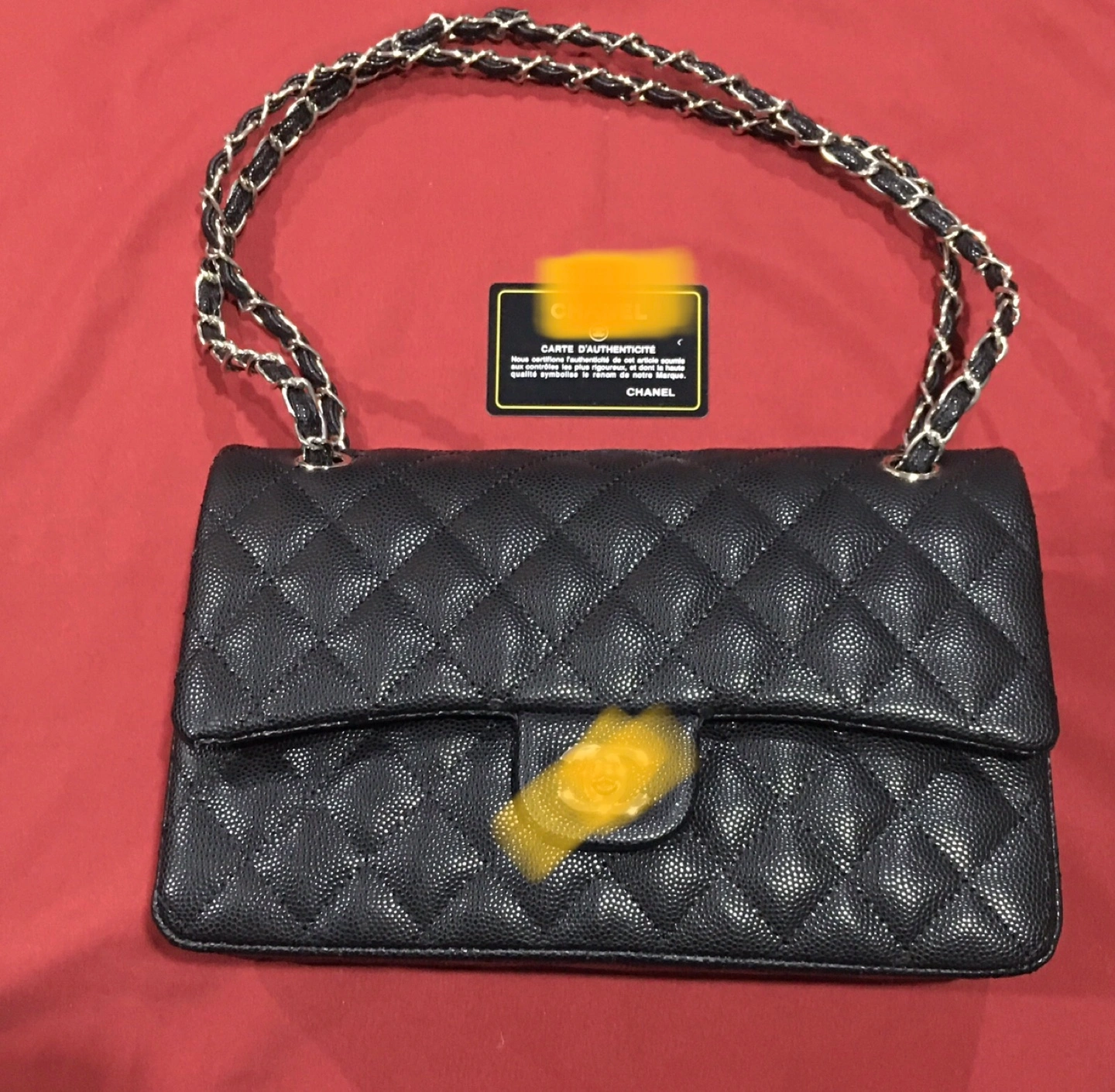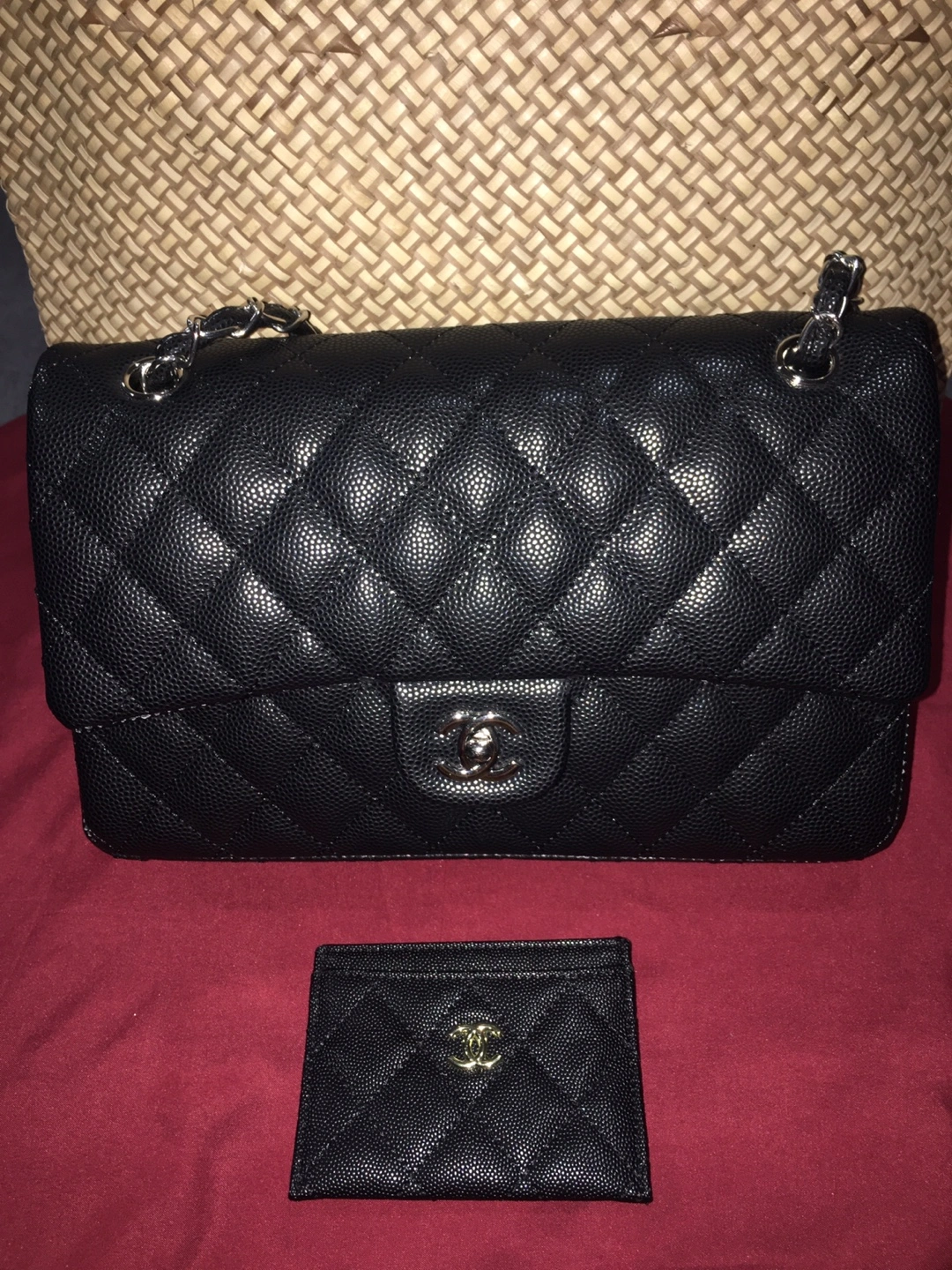 Classic Chanel quilted shoulder bag in black. It's in great brand new condition. The bag measures approximately 11 inches in length. Comes with a card holder.