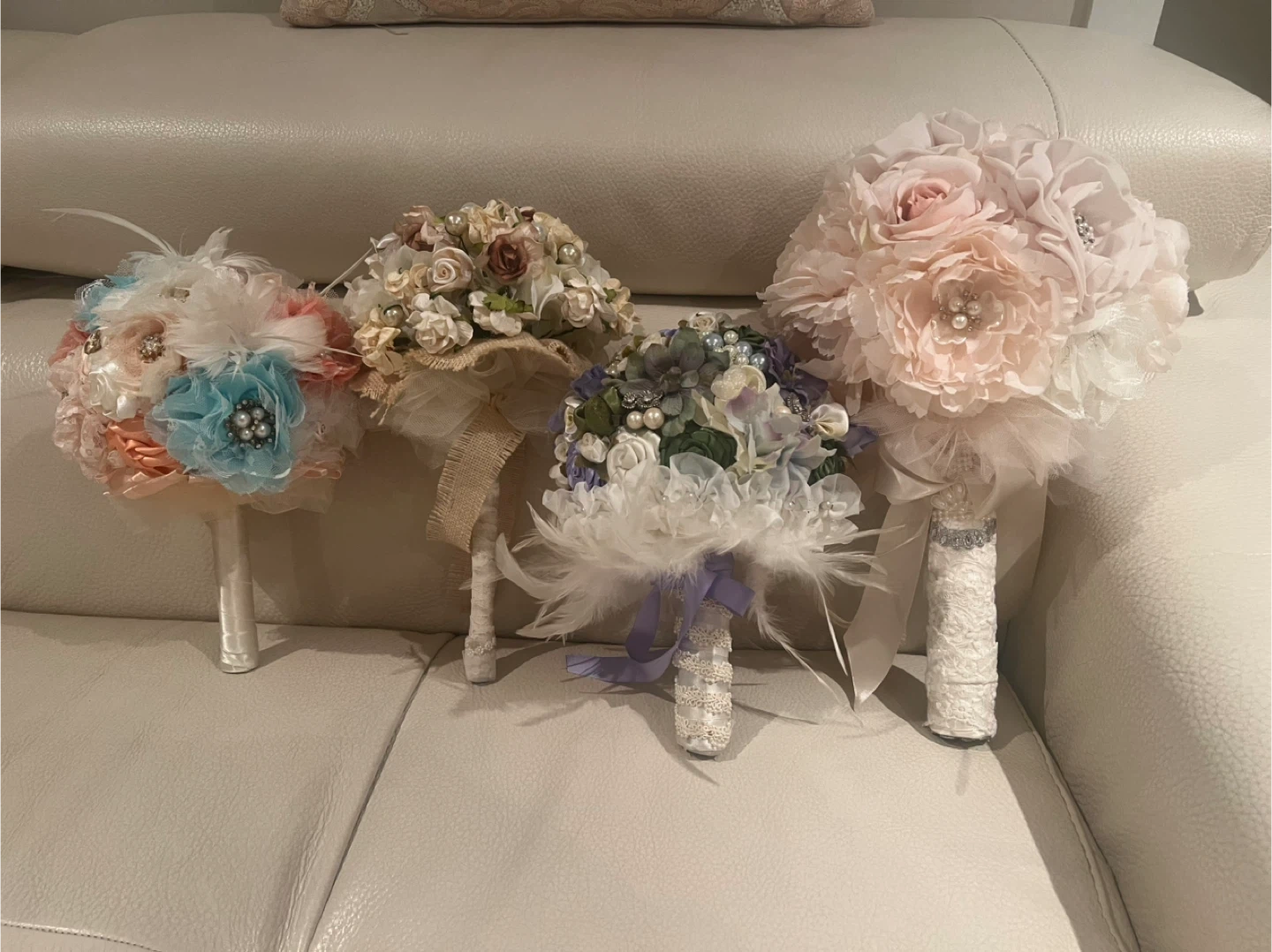 Selling a set of 4 wedding bouquets. They are in great condition and would be perfect for a wedding or event. They feature a variety of colours and styles. Sold separately!