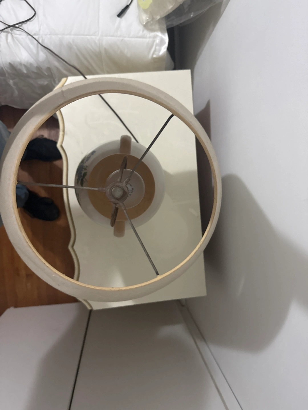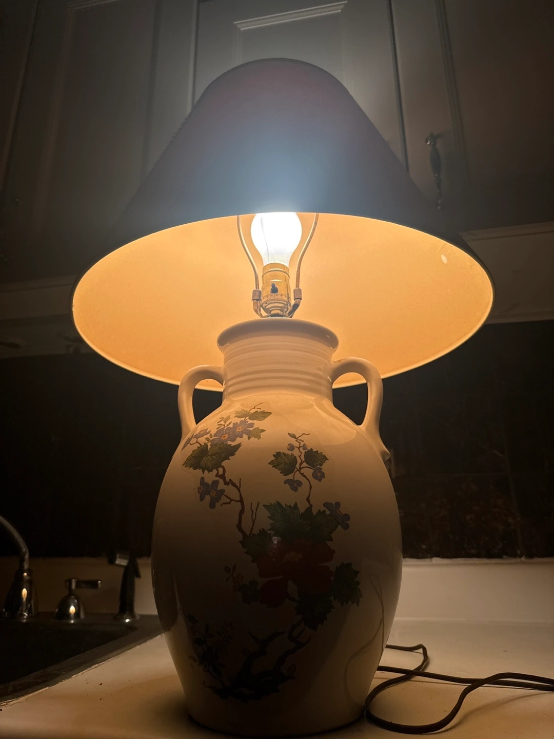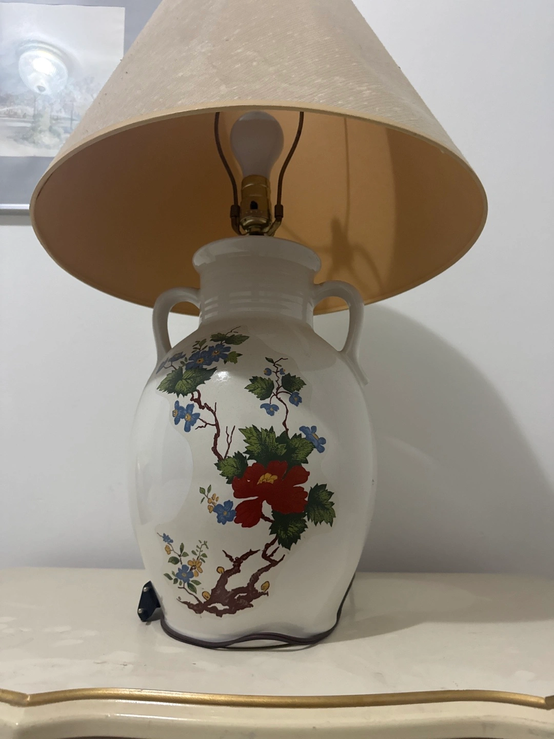 Selling a beautiful floral ceramic table lamp. It features a unique design with red and blue flowers on a white base. Perfect for adding a touch of elegance to any room!